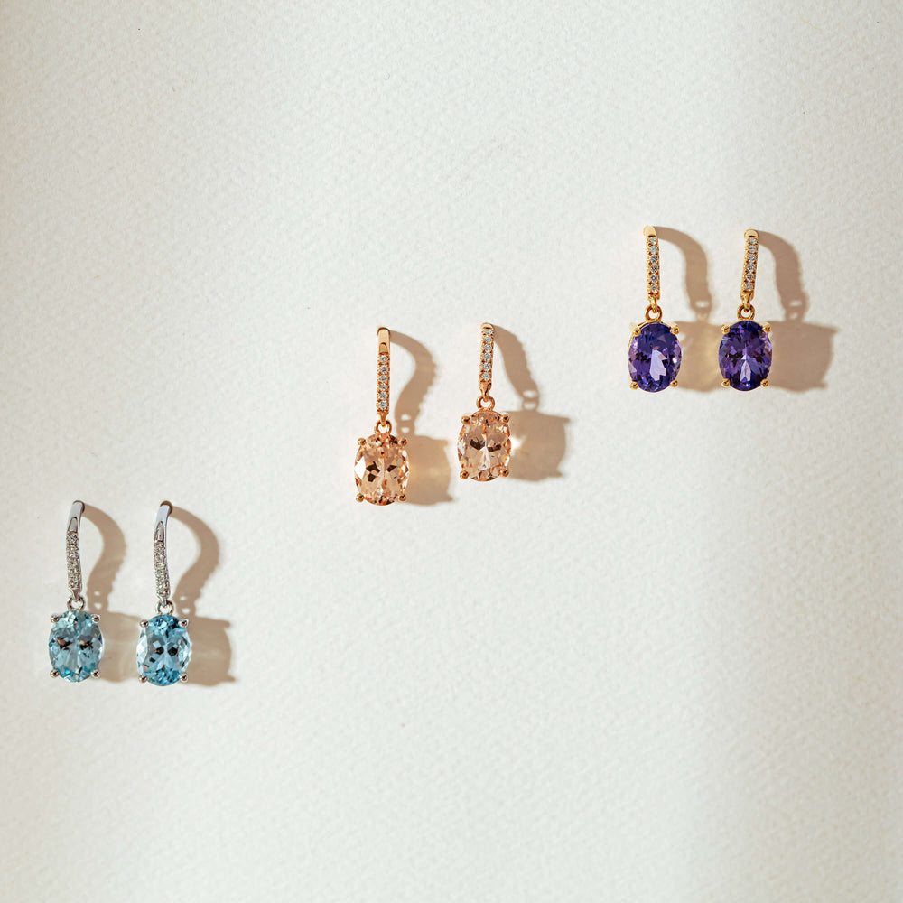 The Lulu earrings - a blend of elegance and grace. These earrings, from our signature 1899 collection, feature captivating oval faceted tanzanites four claw-set swinging on diamond set oval hooked earwires. The vibrant blue of tanzanite and the brilliance of diamonds create a refined design, ideal for any occasion.