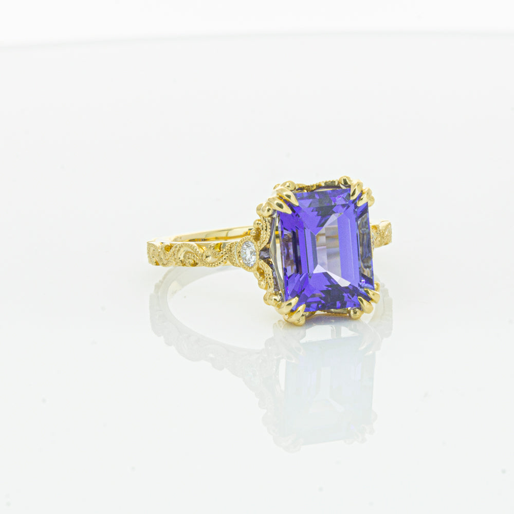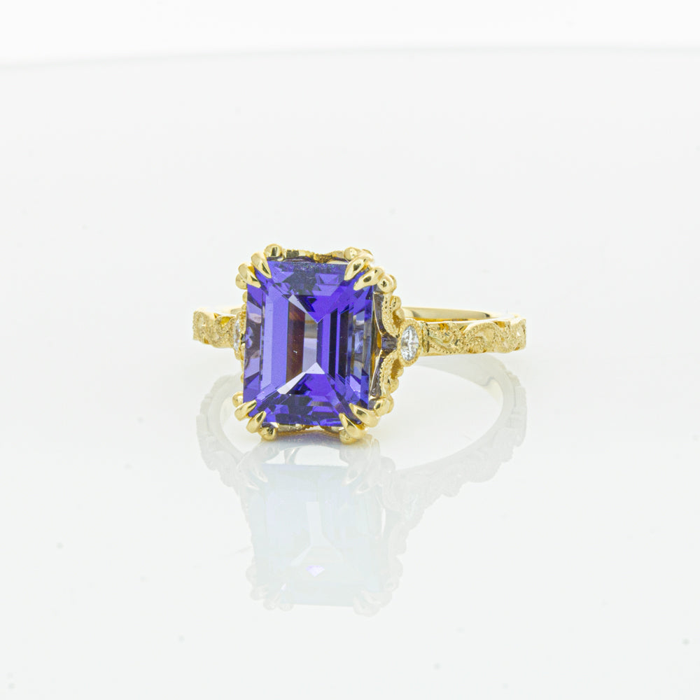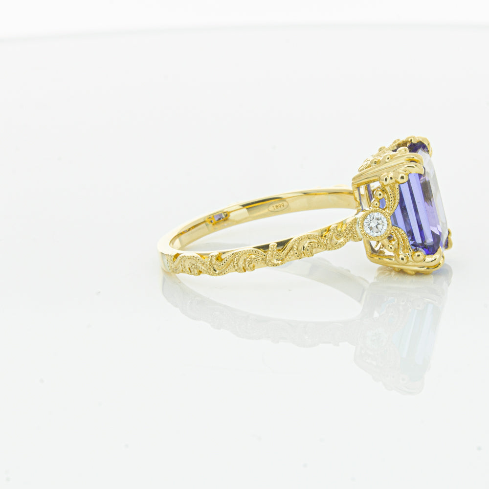 This gorgeous tanzanite ring from our signature 1899 collection, truly exhibits a spectacular display of striking purple hues.