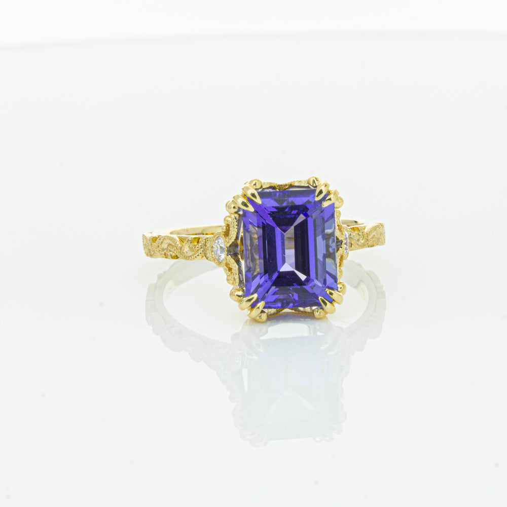 18ct Yellow Gold Tanzanite & Diamond Romanov Ring