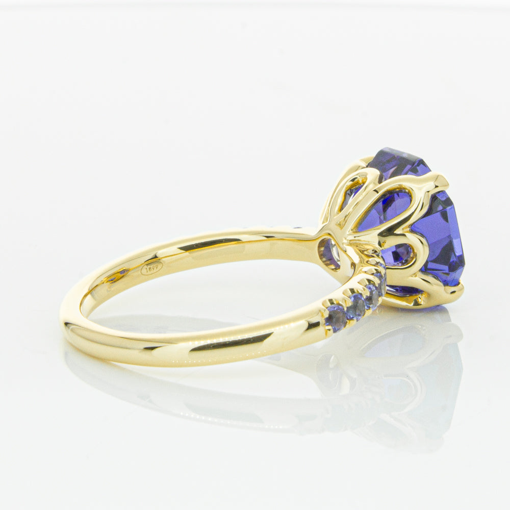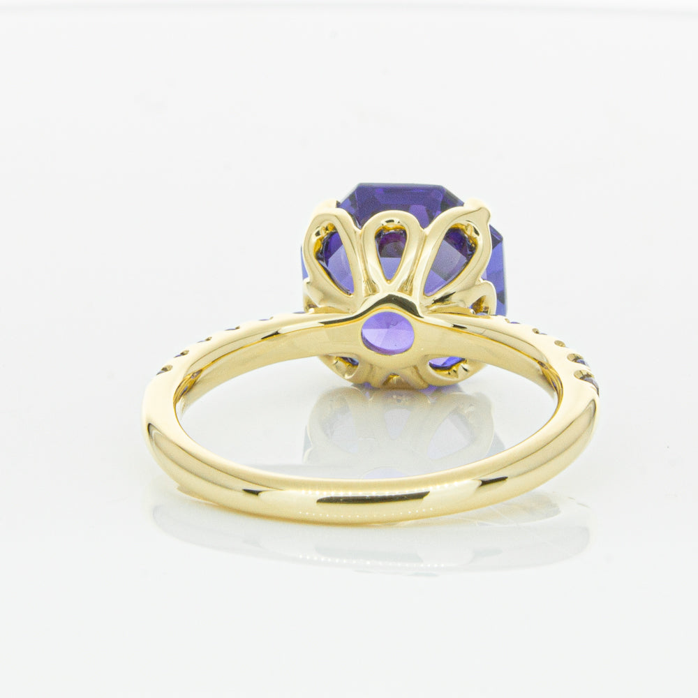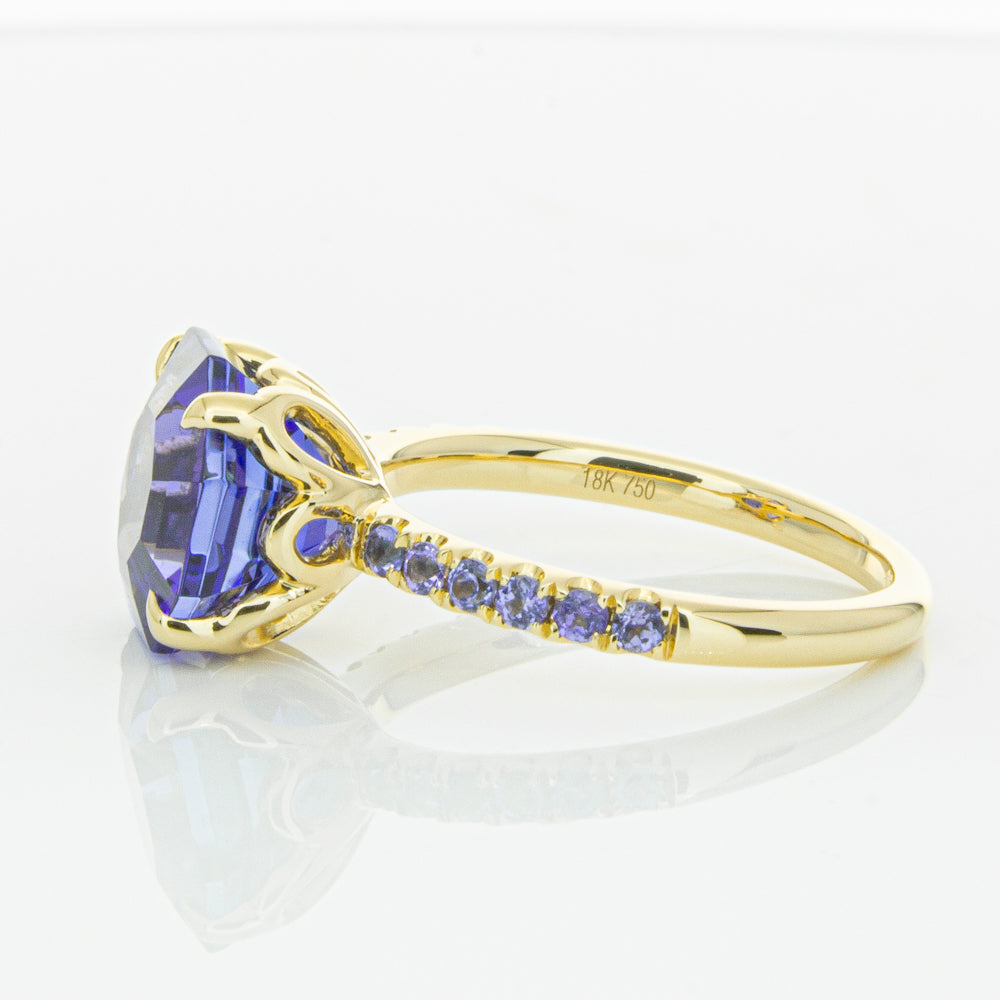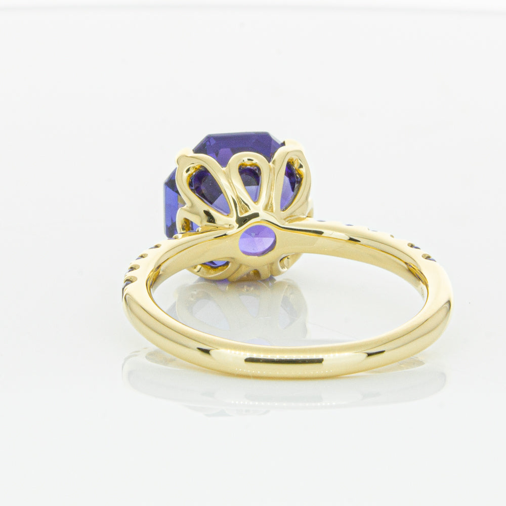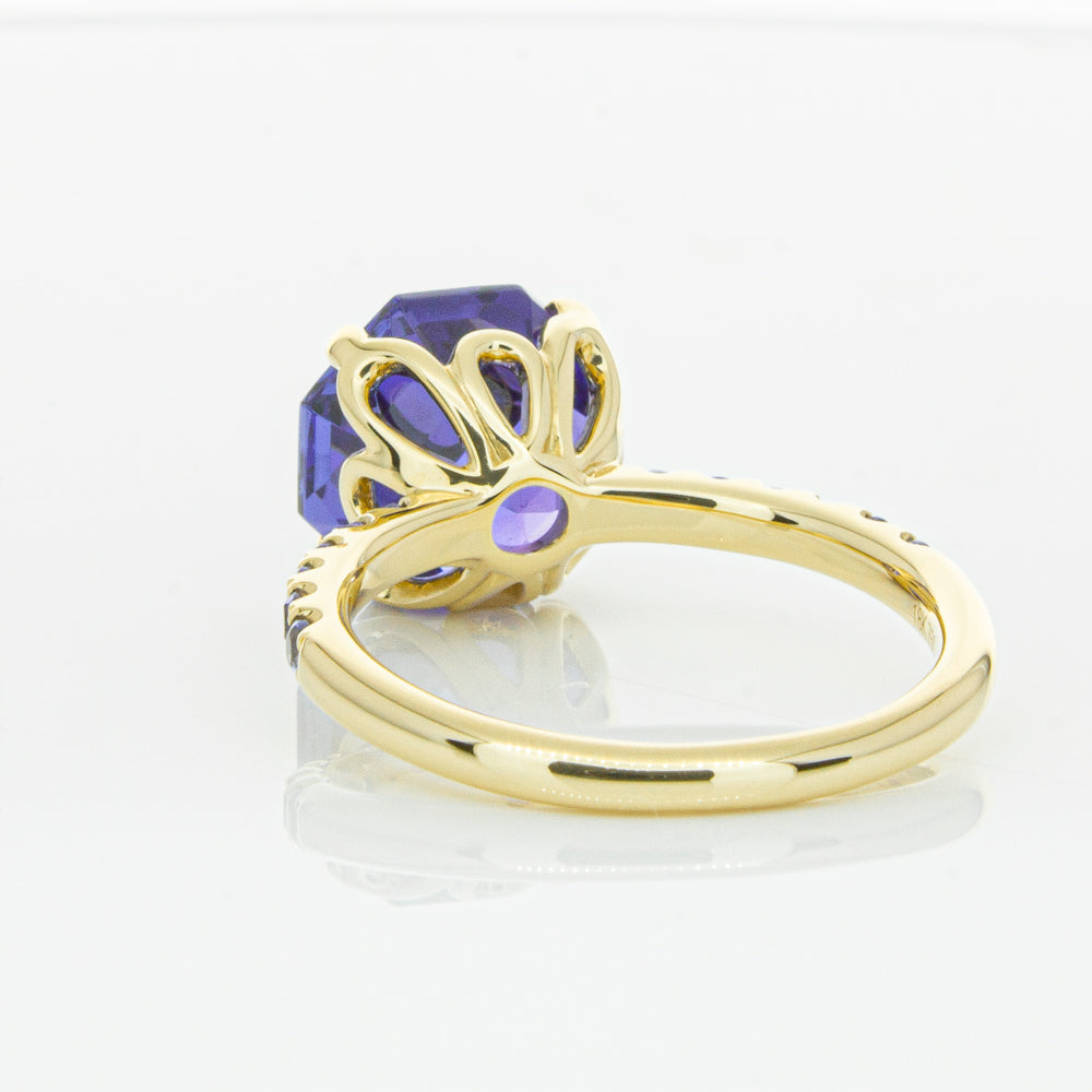 A stunning addition to our Octavia collection, this glistening 1899 Octavus ring boasts one impressive octagonal faceted tanzanite in a 18ct yellow gold with smaller tanzanite set shoulders. Strikingly unique, you will adore showing off this mesmerising ring!