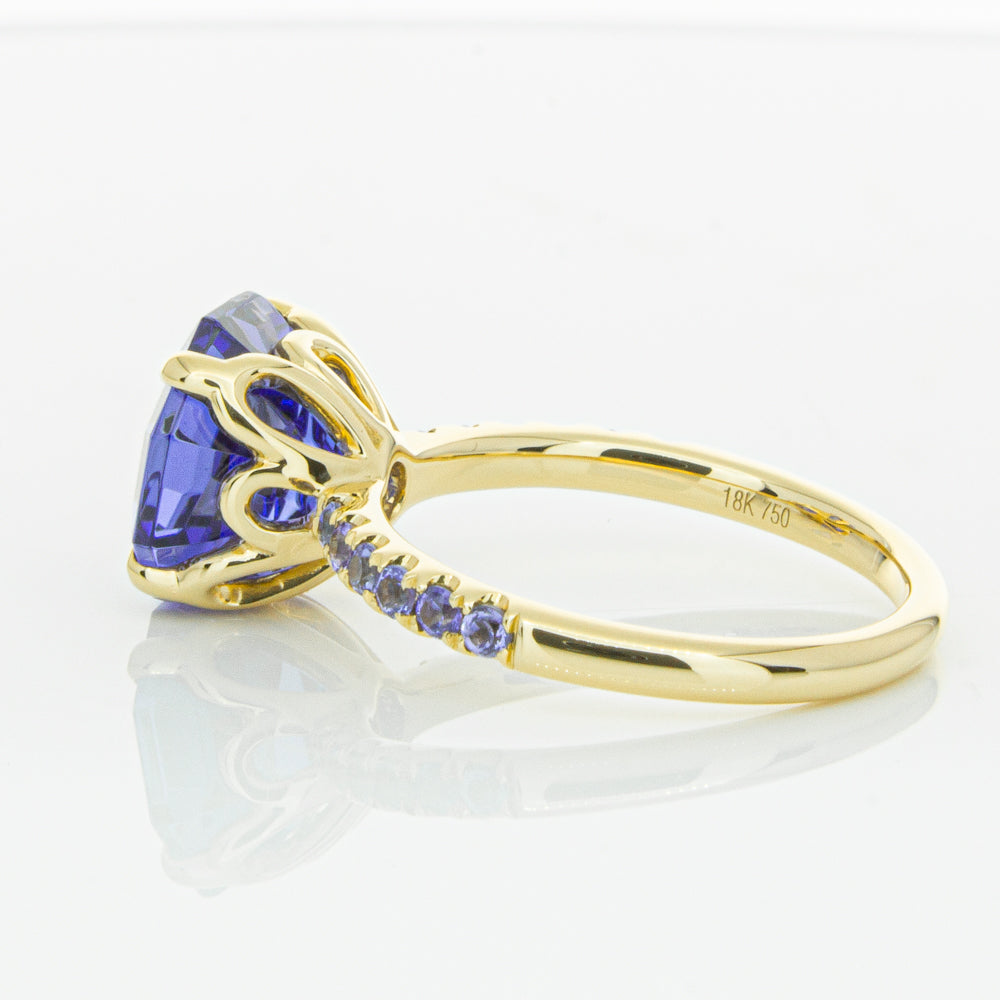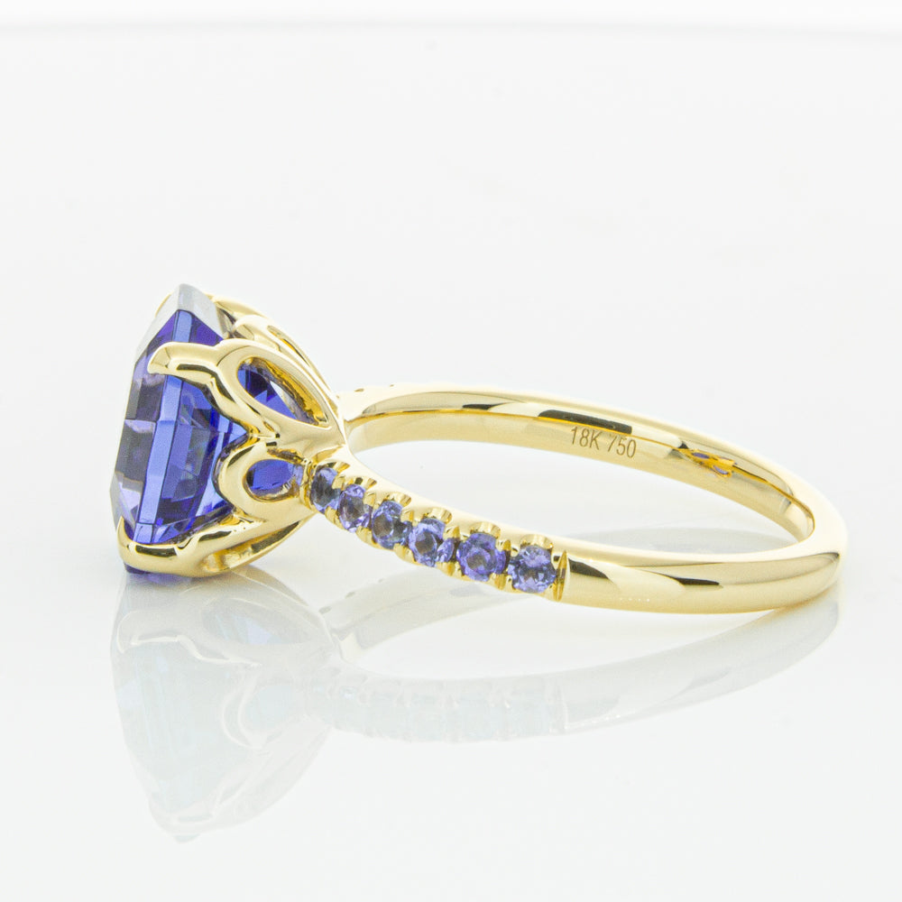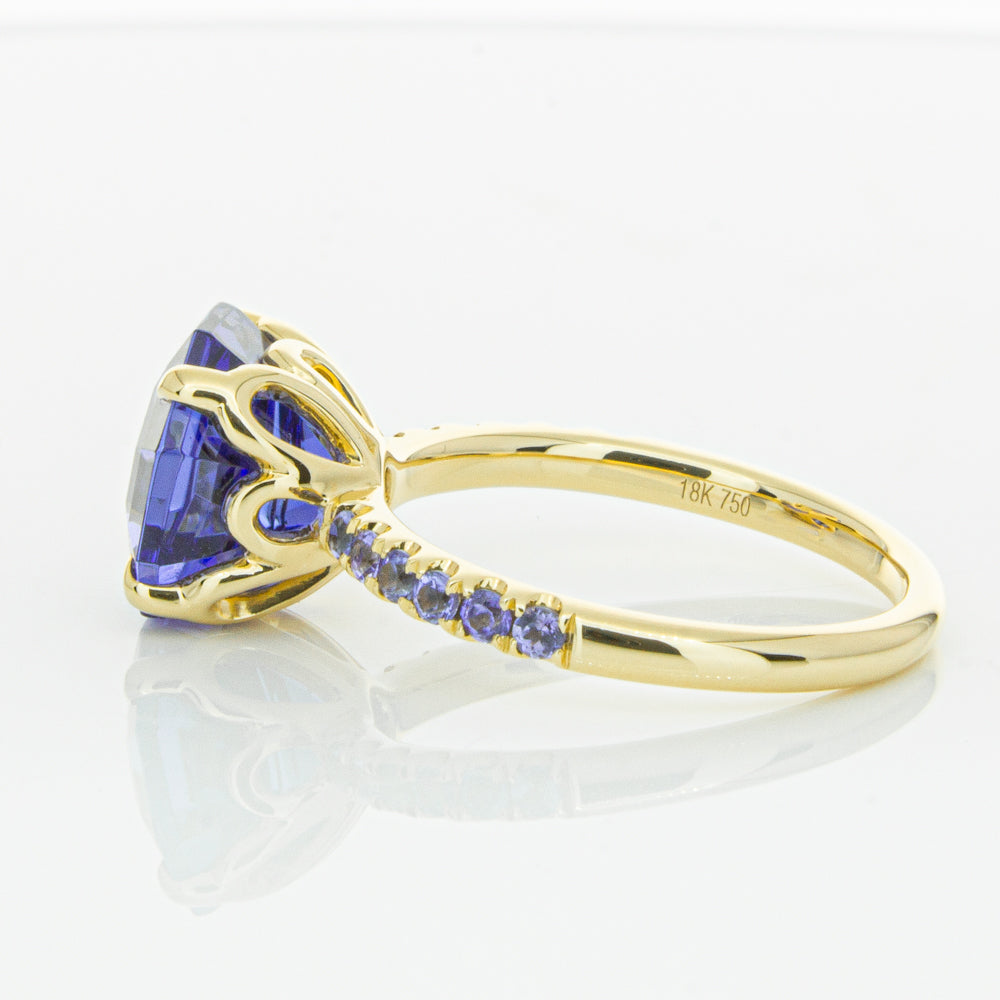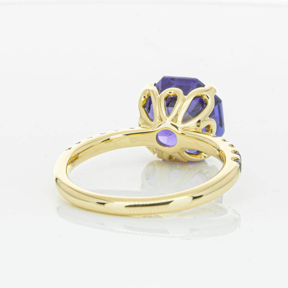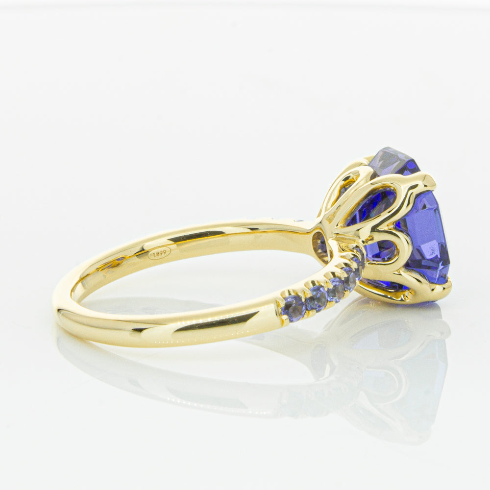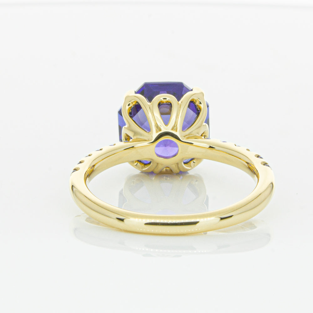 A stunning addition to our Octavia collection, this glistening 1899 Octavus ring boasts one impressive octagonal faceted tanzanite in a 18ct yellow gold with smaller tanzanite set shoulders. Strikingly unique, you will adore showing off this mesmerising ring!