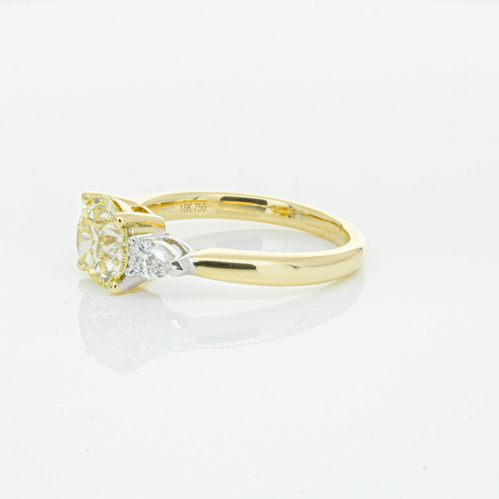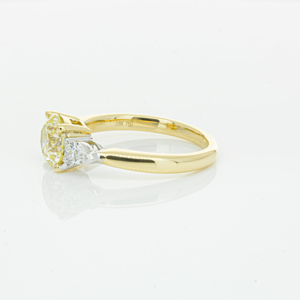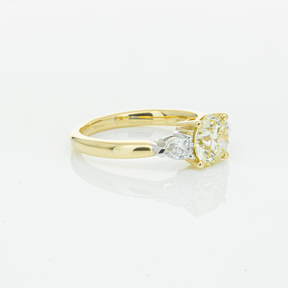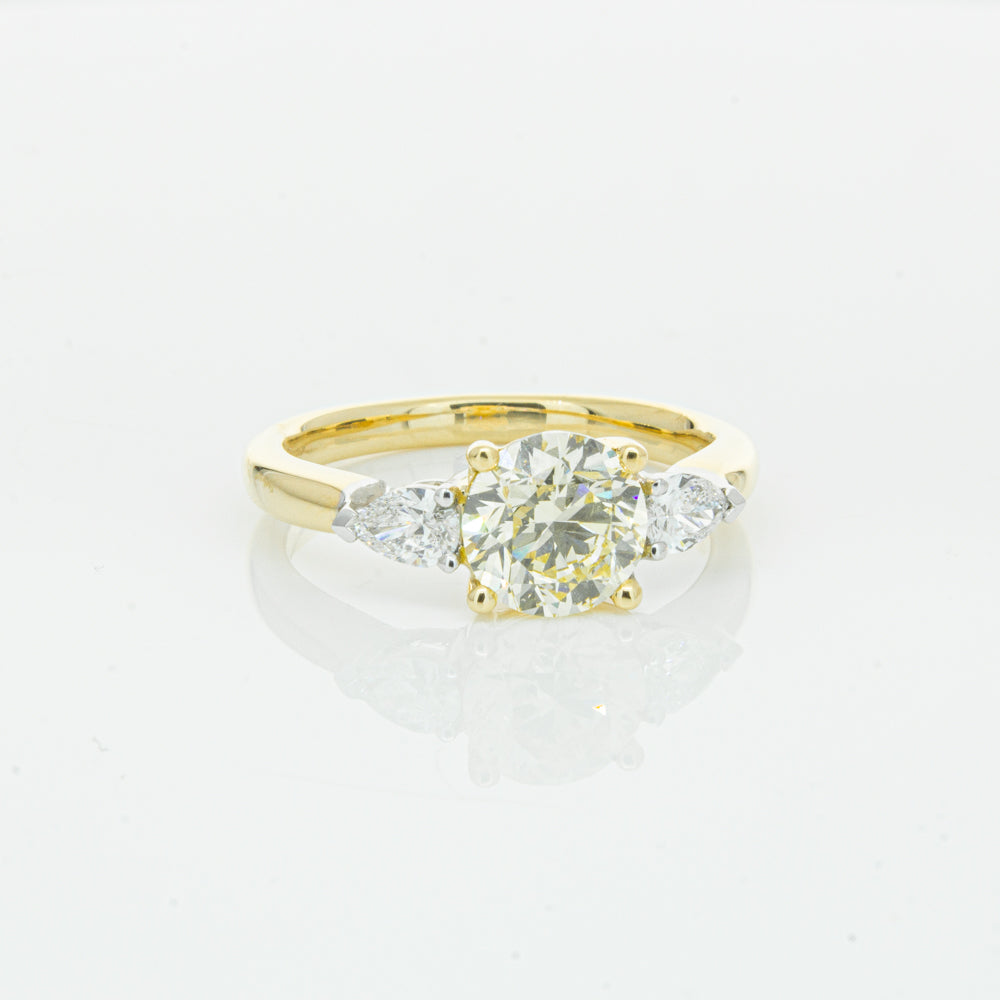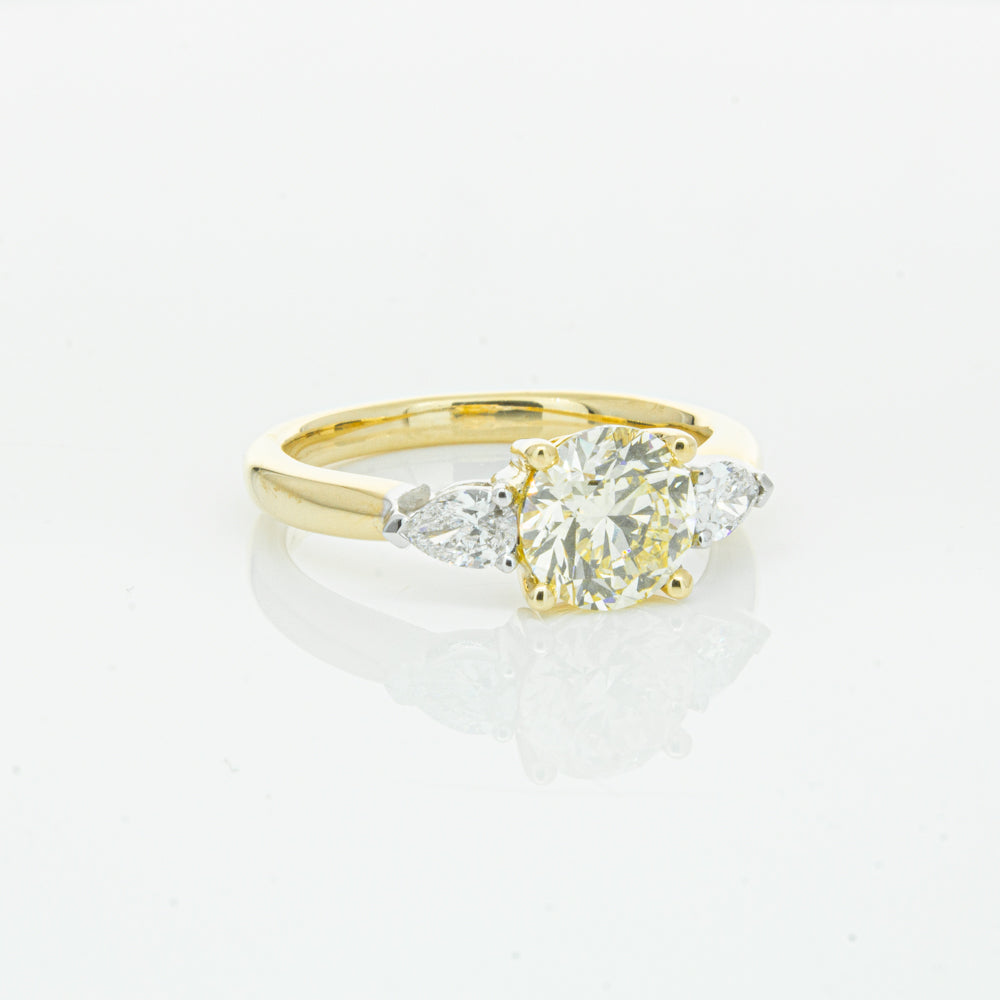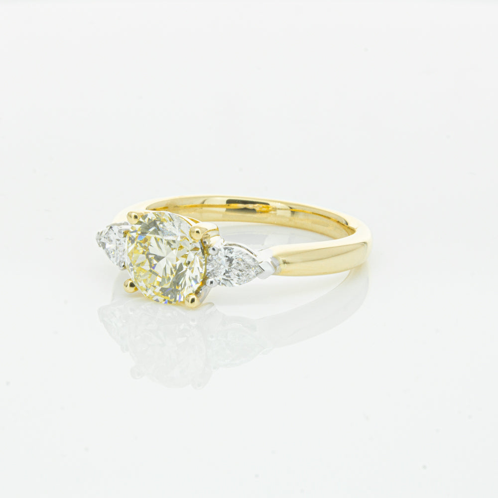 "Elegance is the only beauty that never fades!" Boasting a stunning round brilliant cut yellow diamond and two pear brilliant cut diamonds you will be the definition of beauty and elegance in this Ayla ring from our signature 1899 collection, beautifully set in 18ct yellow and white gold.