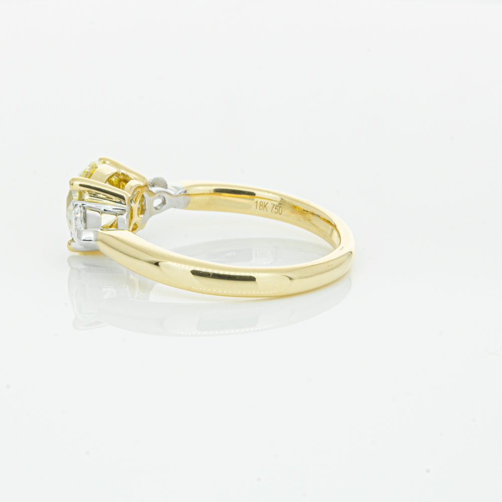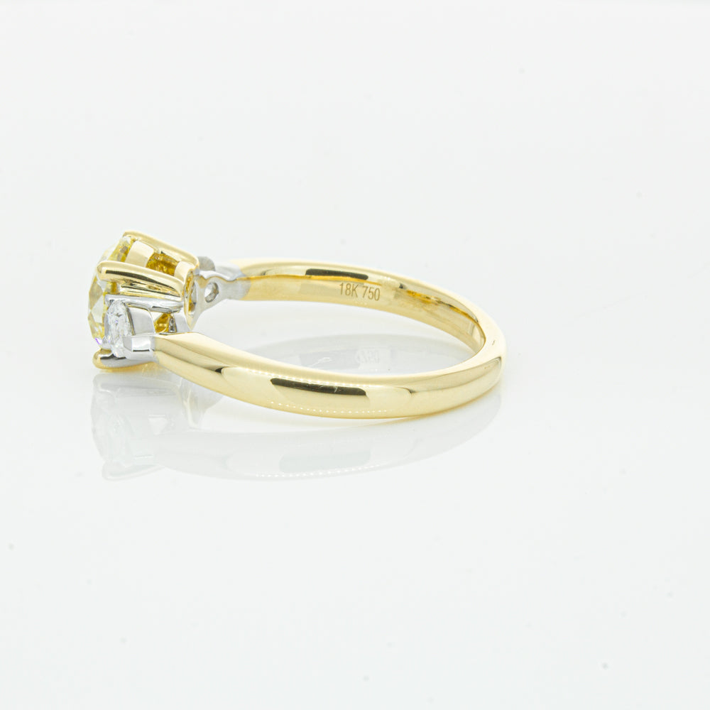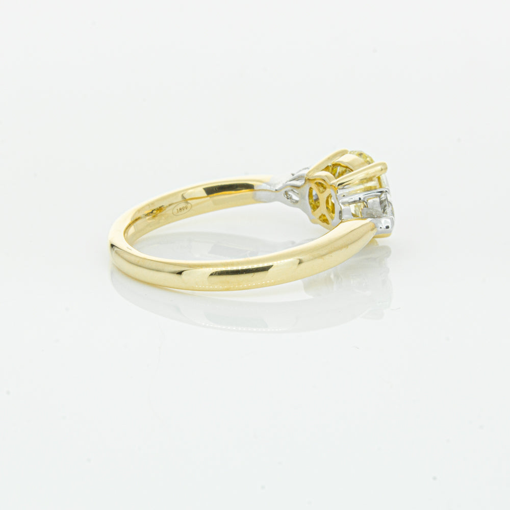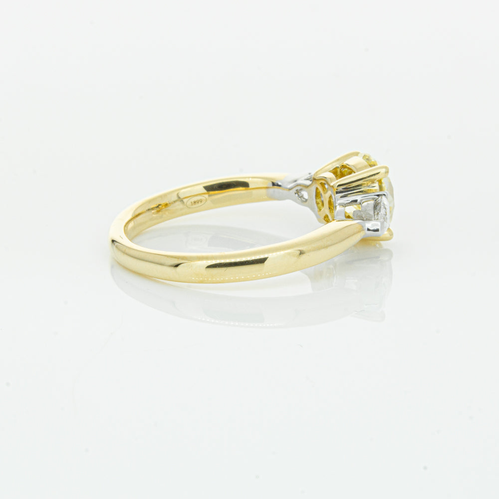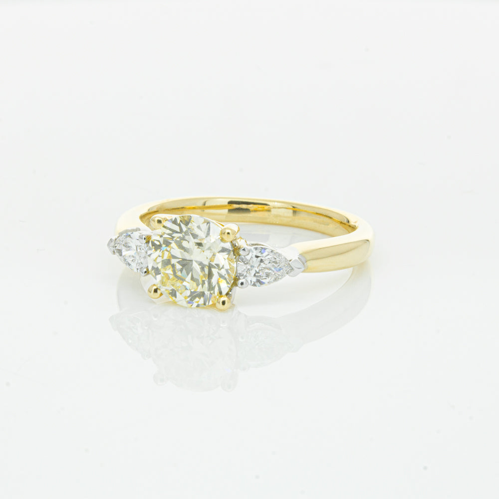"Elegance is the only beauty that never fades!" Boasting a stunning round brilliant cut yellow diamond and two pear brilliant cut diamonds you will be the definition of beauty and elegance in this Ayla ring from our signature 1899 collection, beautifully set in 18ct yellow and white gold.