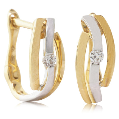 These gorgeous two tone gold hoops, set with 2 brilliant round cut diamonds are sure to make her feel like the only girl in the world.