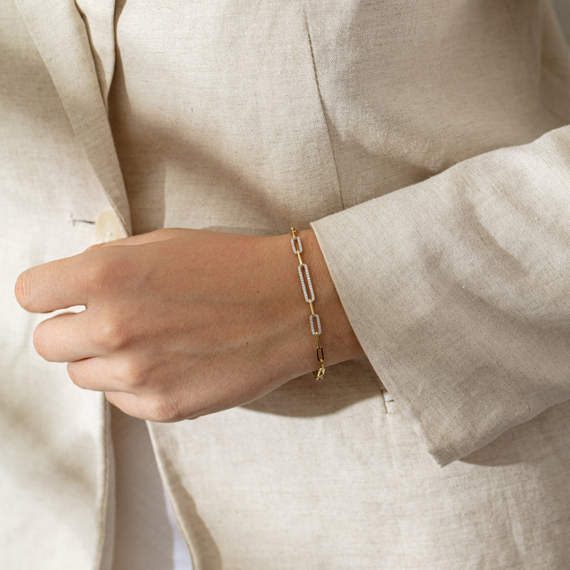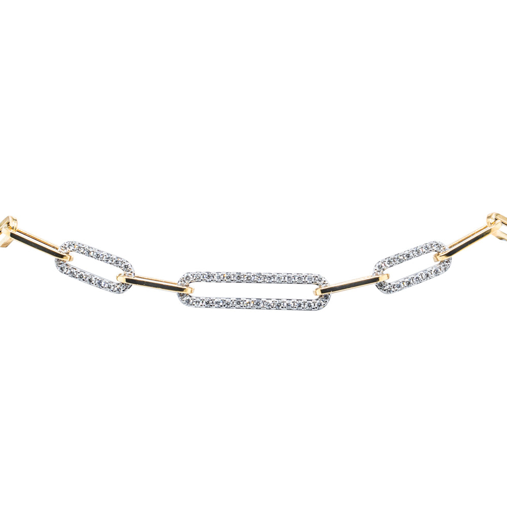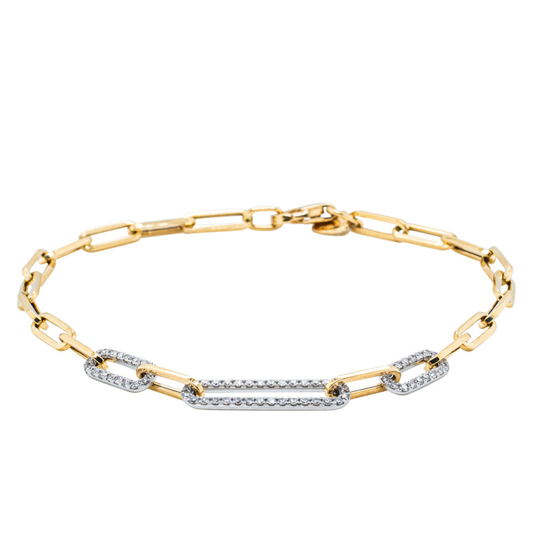 Classic and timeless, you will treasure wearing this shining gold and diamond link bracelet every day. Crafted to perfection from 18ct yellow and white gold, this bracelet features three diamond set centre links.