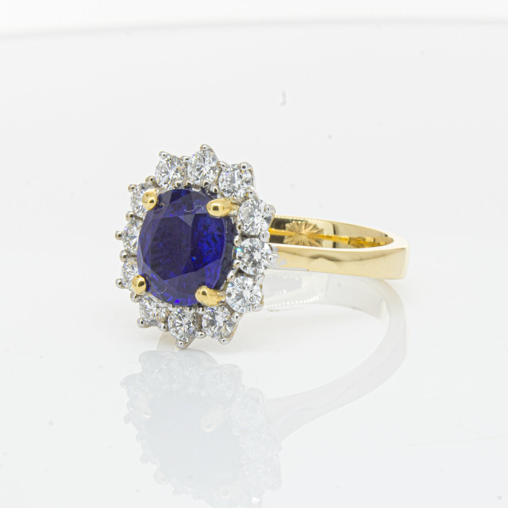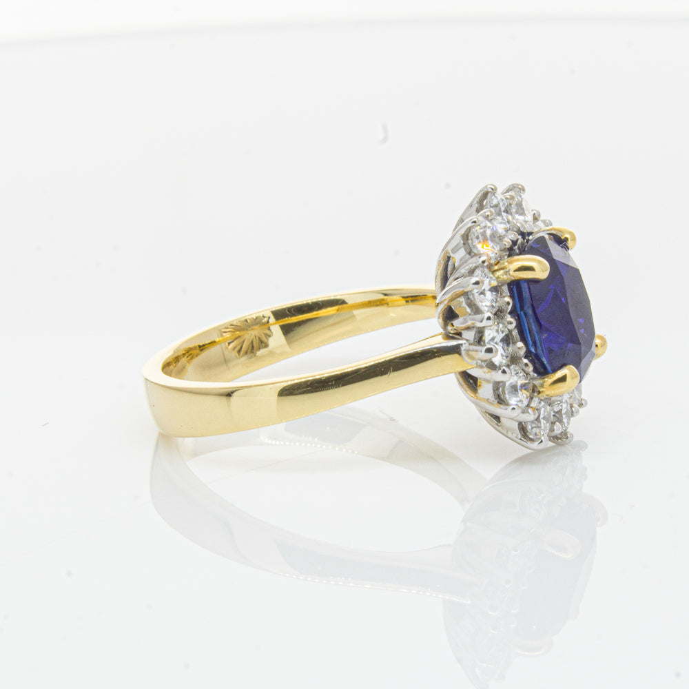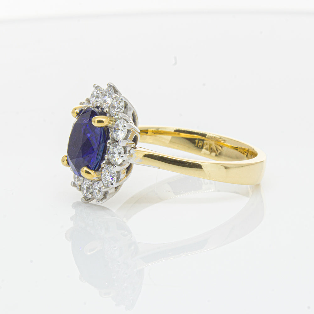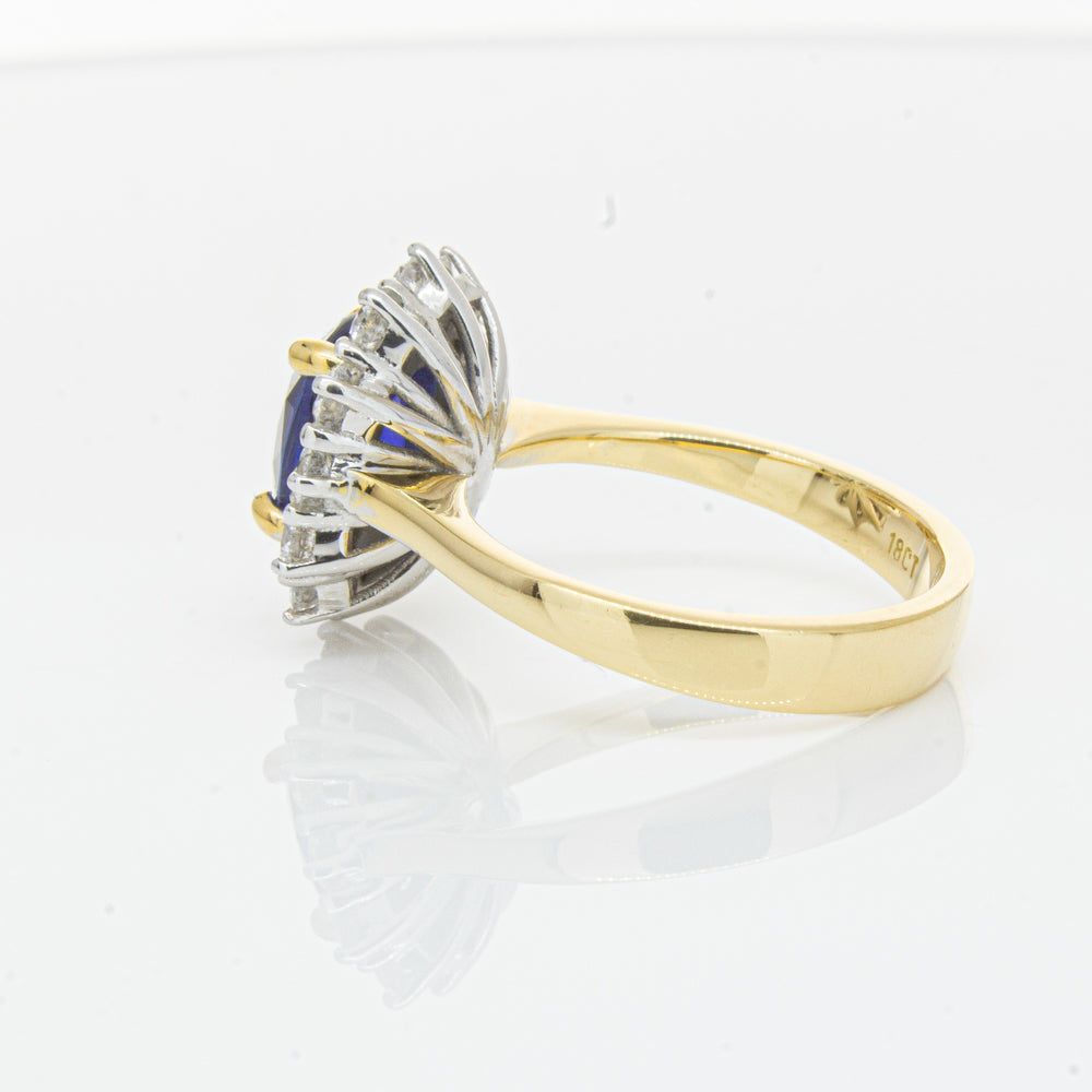 18ct Yellow Gold Oval Sapphire & Diamond Claw Set Halo Ring