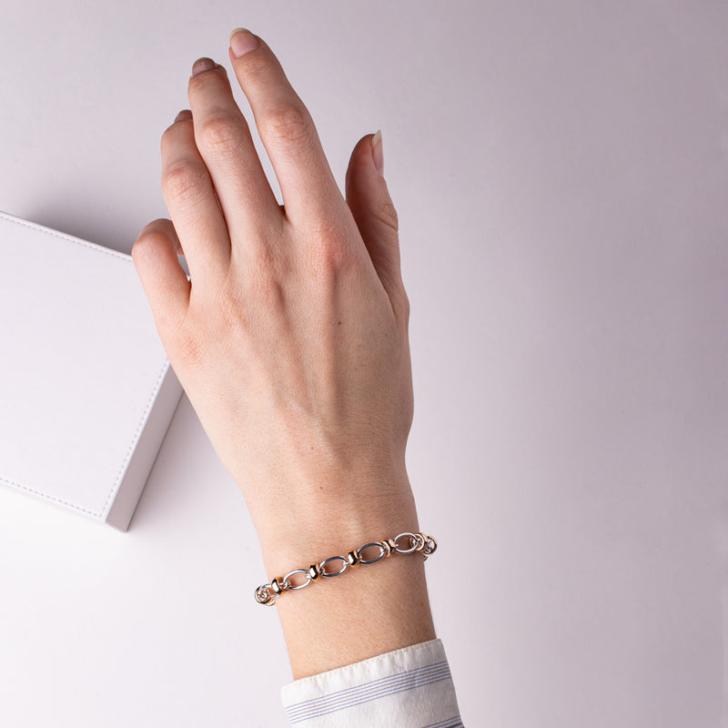 Crafted from 9ct rose gold and sterling silver, this timeless bracelet is fit for every occasion.