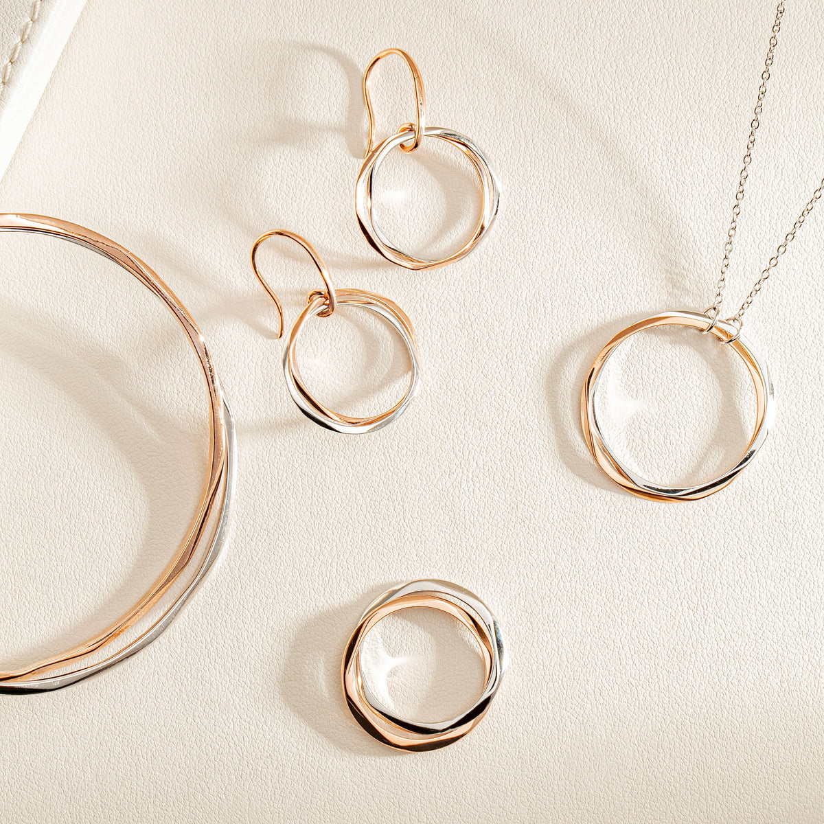 Two organic circles of precious metal, two unique journeys coming together. The joining of these continuous rings reflects the strength of our love and connection.Two parts entwined together in an inseparable bond, because we are stronger together always.