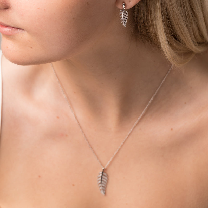 Preciously petite! These shining 9ct white gold fern earrings with diamonds swing from the lobe perfectly! You will adore them.
