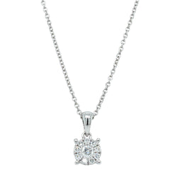 Shine in this glittering diamond and white gold pendant. This elegant pendant features sparkling round brilliant cut diamonds set in 9ct white gold. Whether you are dressing for a long in the office or an exciting night out, your outfit will always look and feel complete with this timeless piece around your neck.