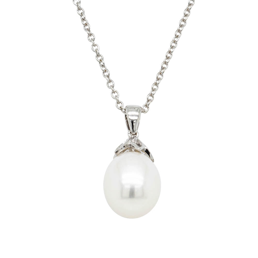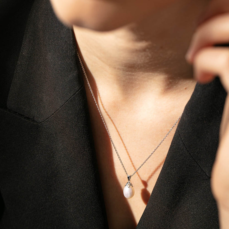 9ct White Gold Freshwater Pearl Petal Pendant