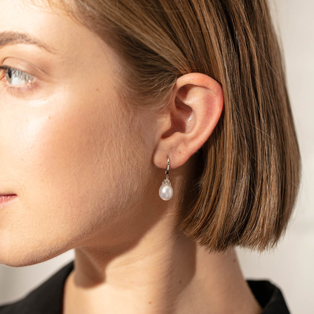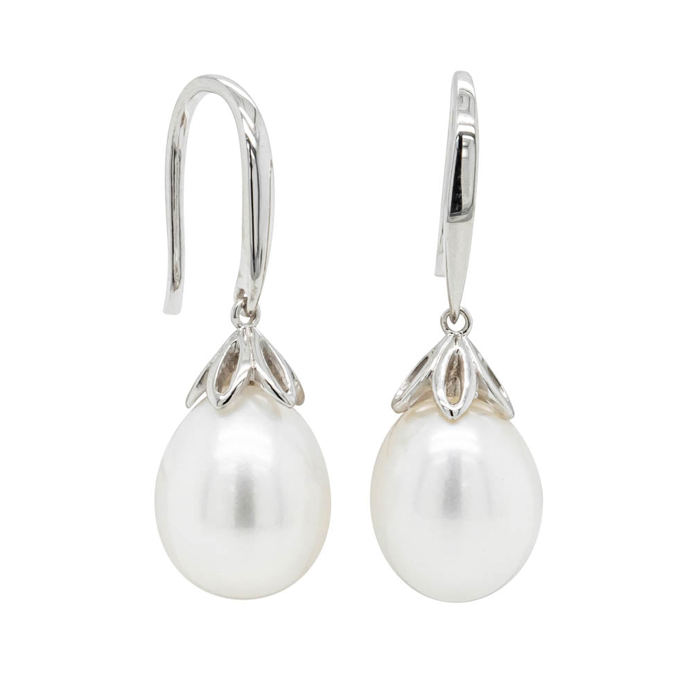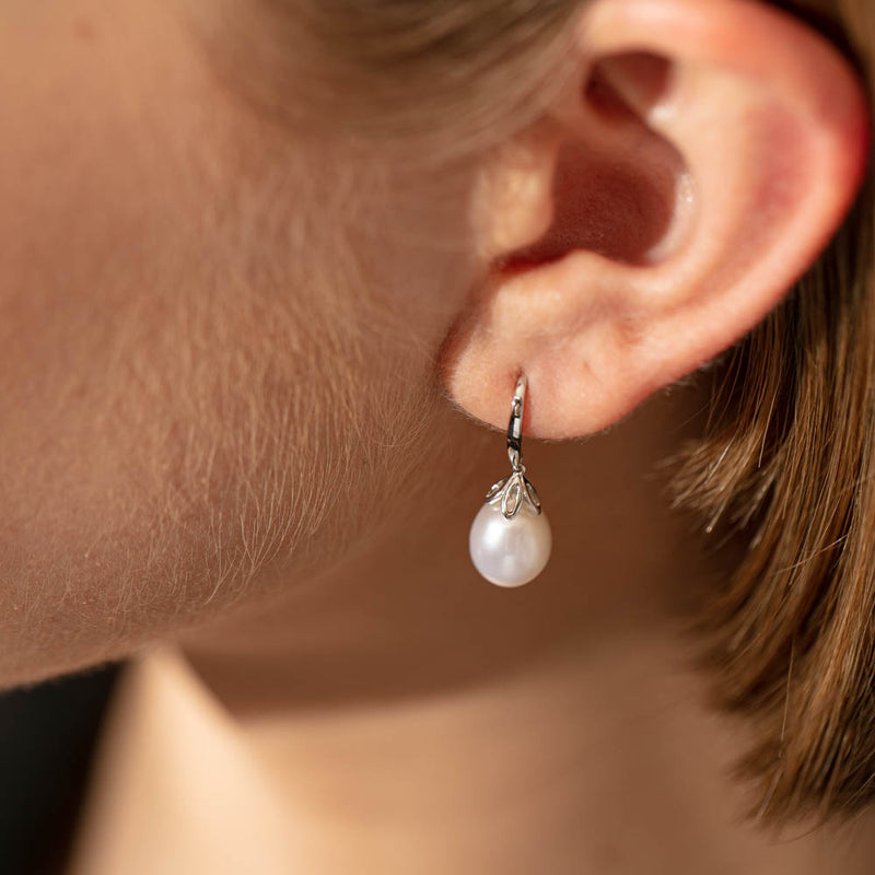 Oh how sweet....These glam drop earrings feature a freshwater pearl that drops from a 9ct white gold petal shaped hook. A timeless piece that exudes elegance and luxury. Just think of all the compliments!