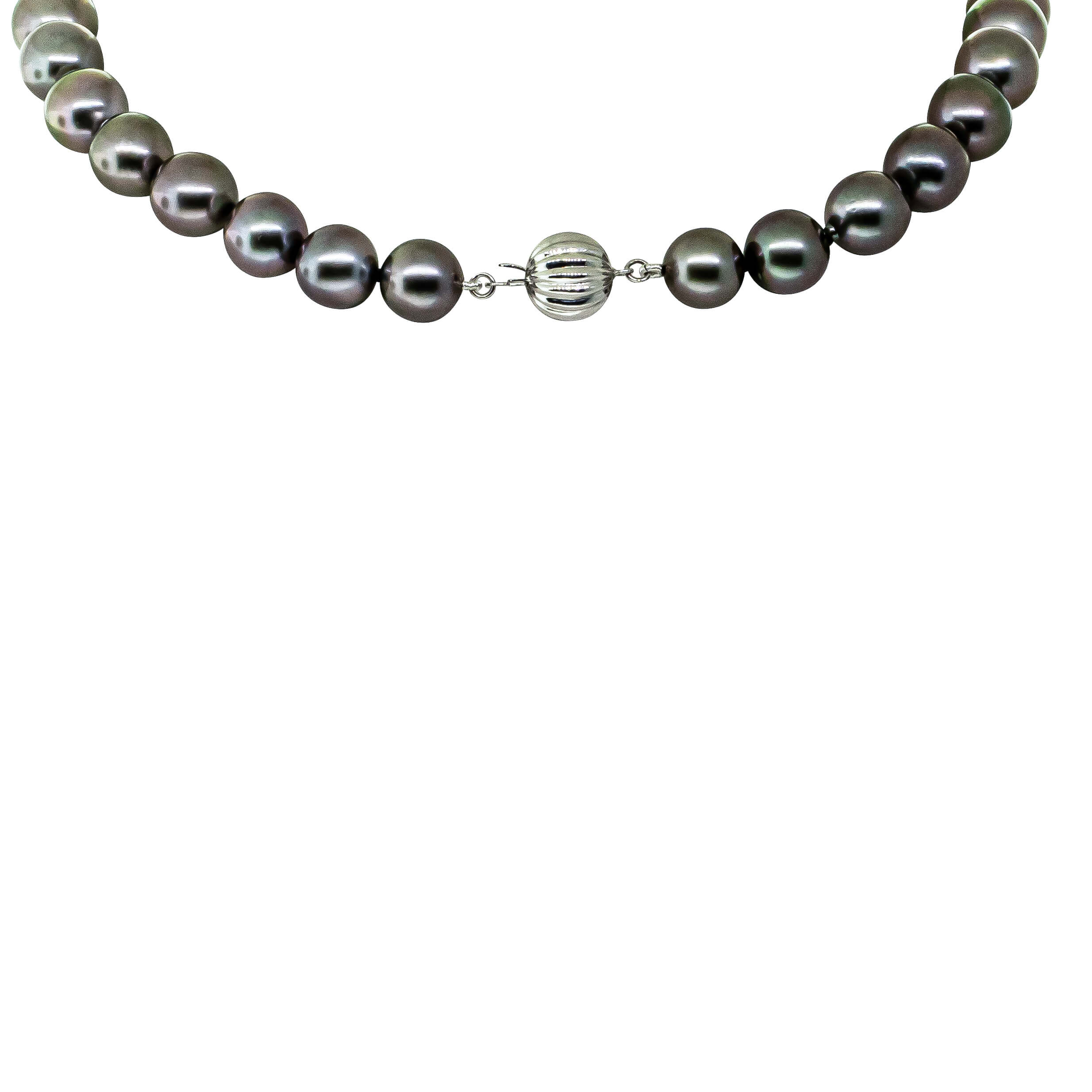 This stunning 9ct white gold strand features 41 graduated, cultured Tahitian black pearls for a sleek and sophisticated finish. The 9ct white gold ball clasp is a fluted ball style and it upholds to the highest standards of quality, providing a secure and reliable closure. The perfect accessory for any special occasion.