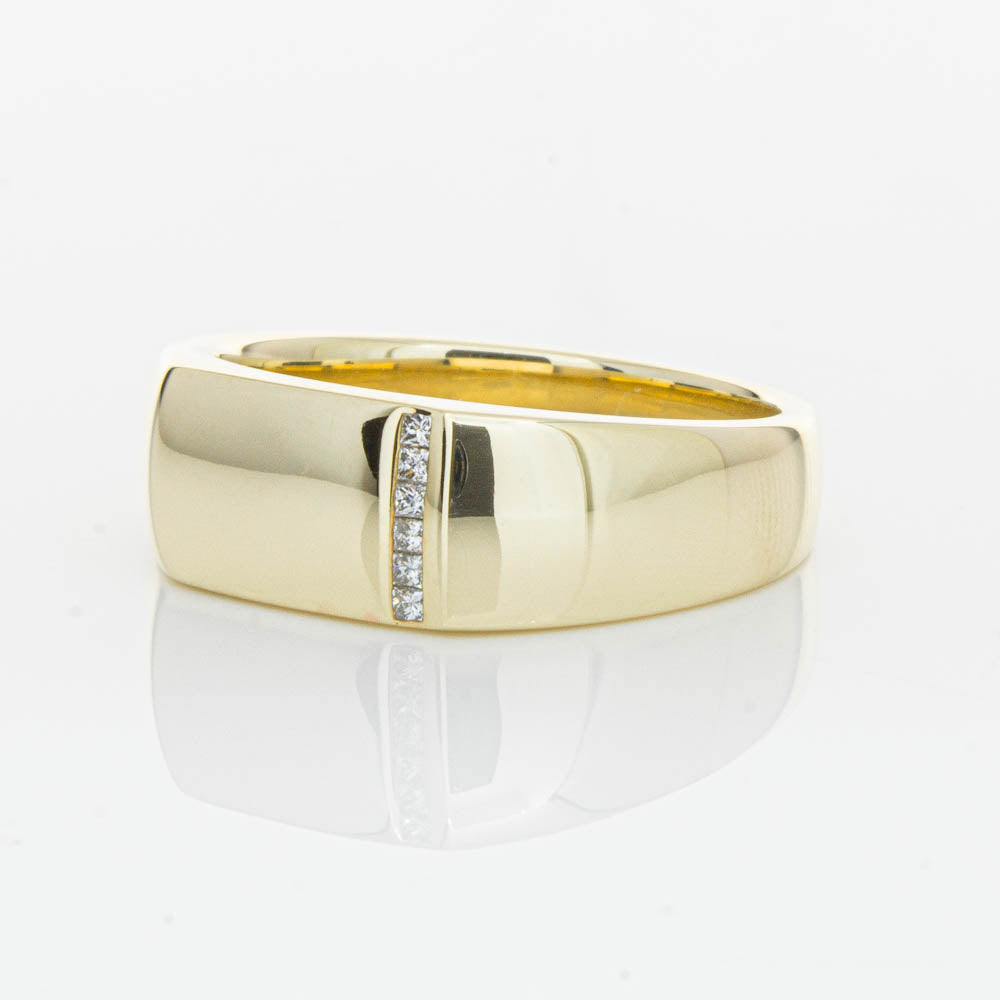 Classic and sleek, this ring is crafted in 9ct yellow gold and features six princess cut diamonds.