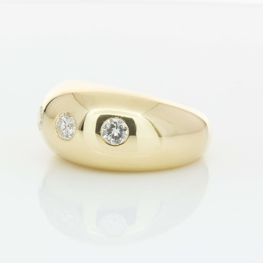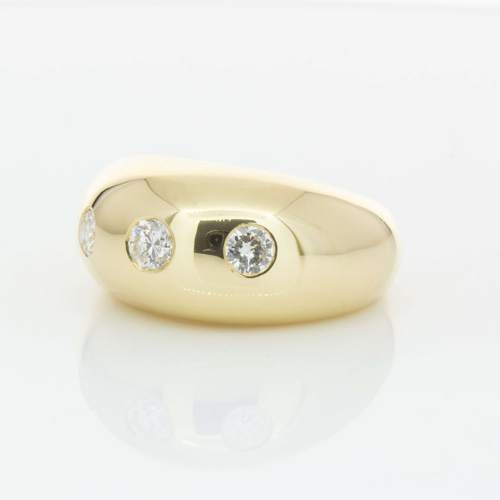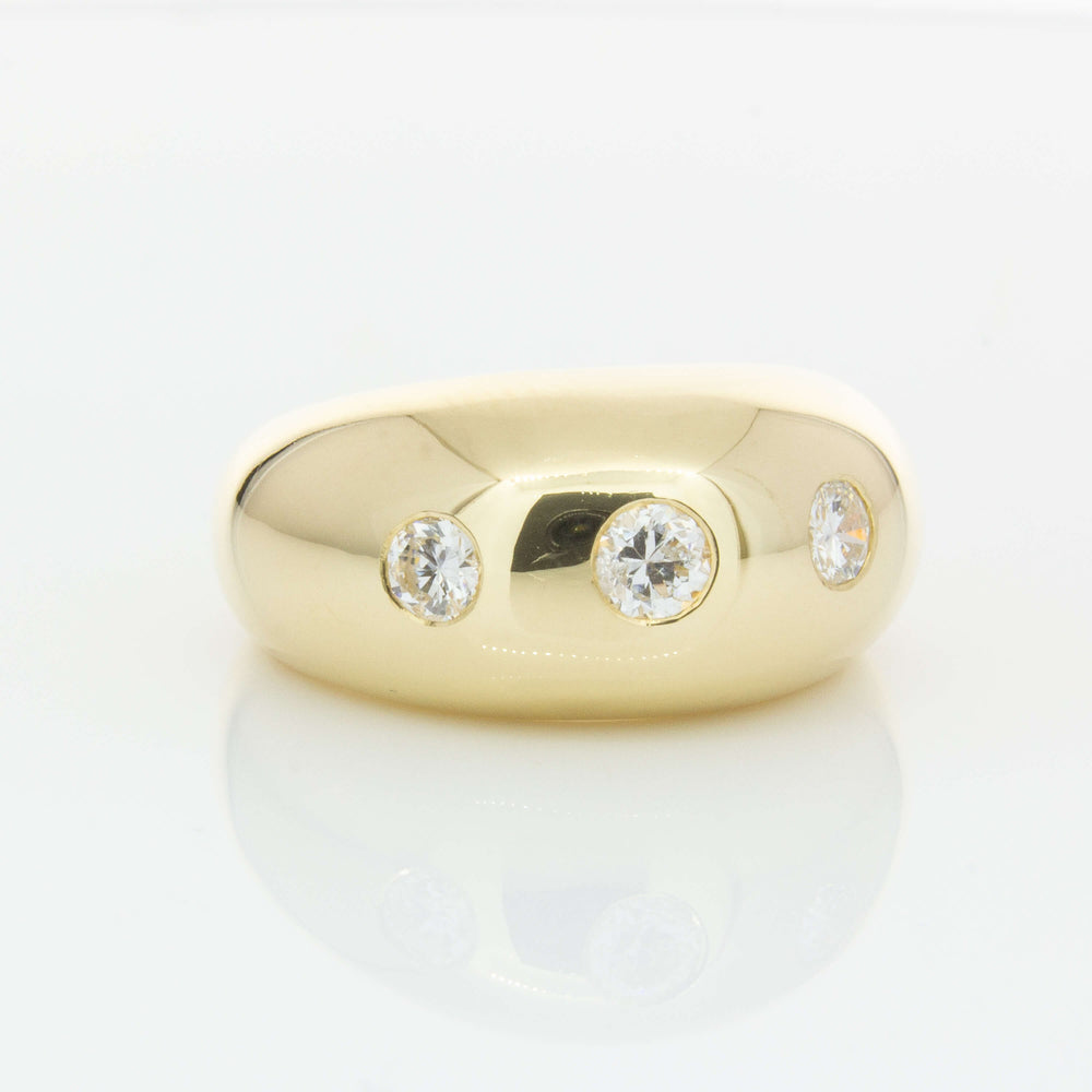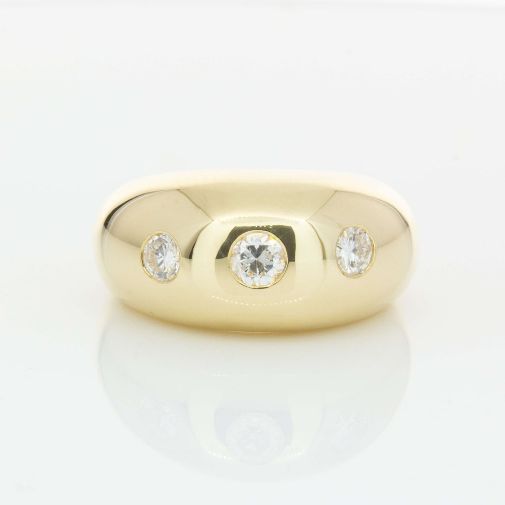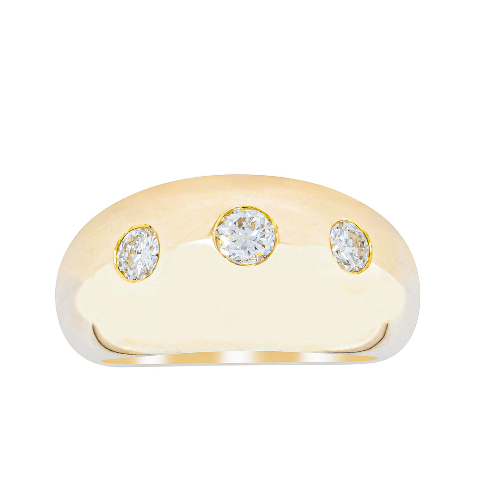 Expertly crafted from 9ct yellow gold, this stunning Madonna ring boasts three round brilliant diamonds and a bold rounded design that adds sophistication to any outfit. With its unique shape and stunning shine, it's the perfect accessory for those looking to make a statement.