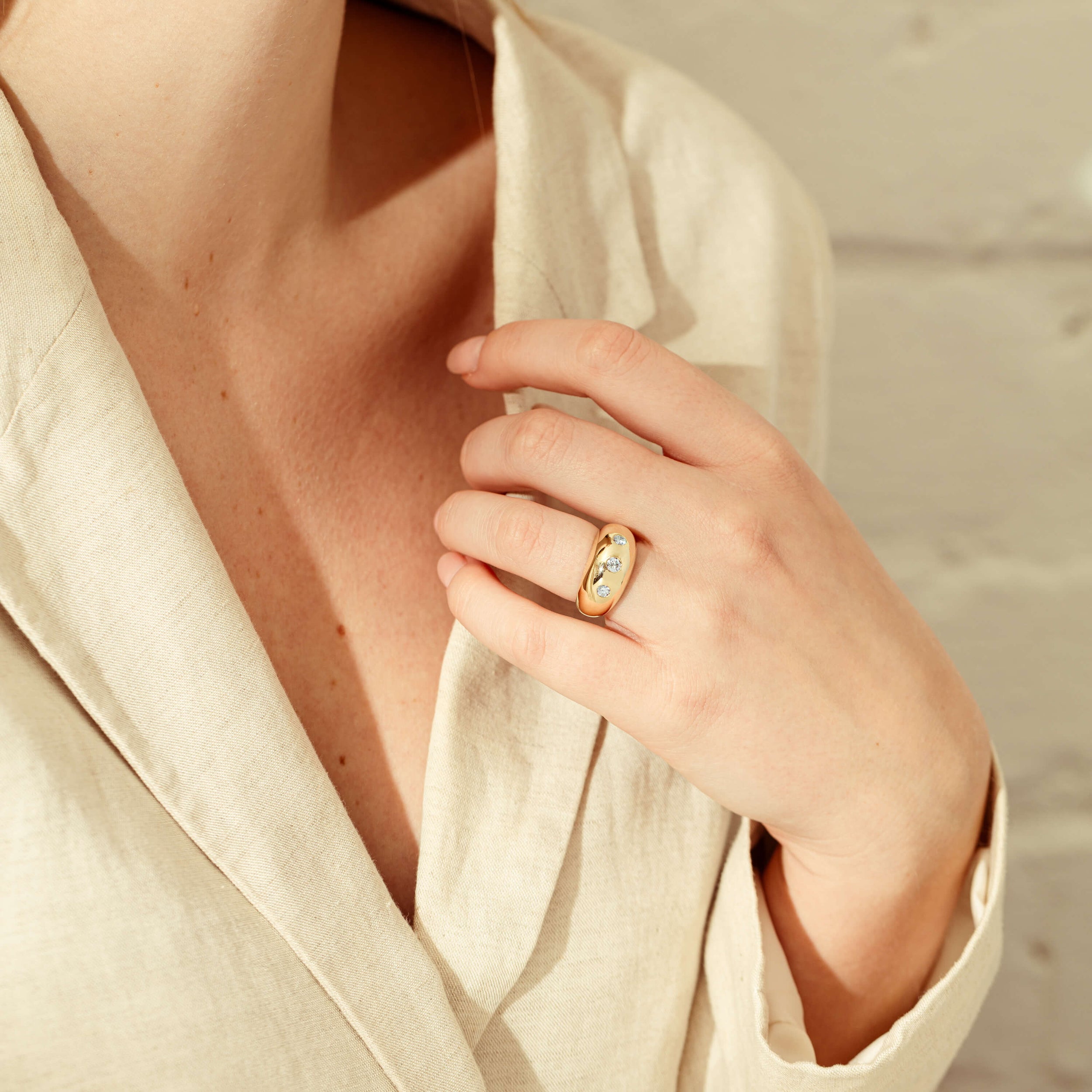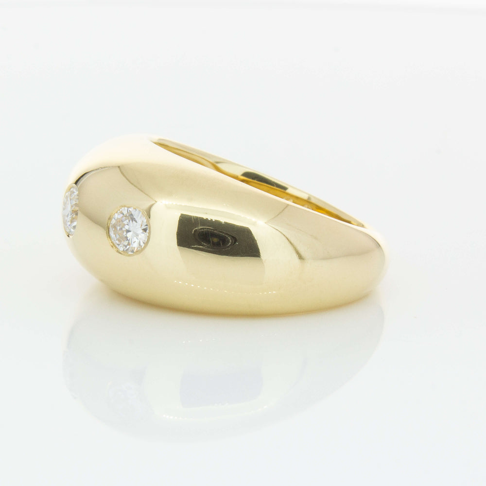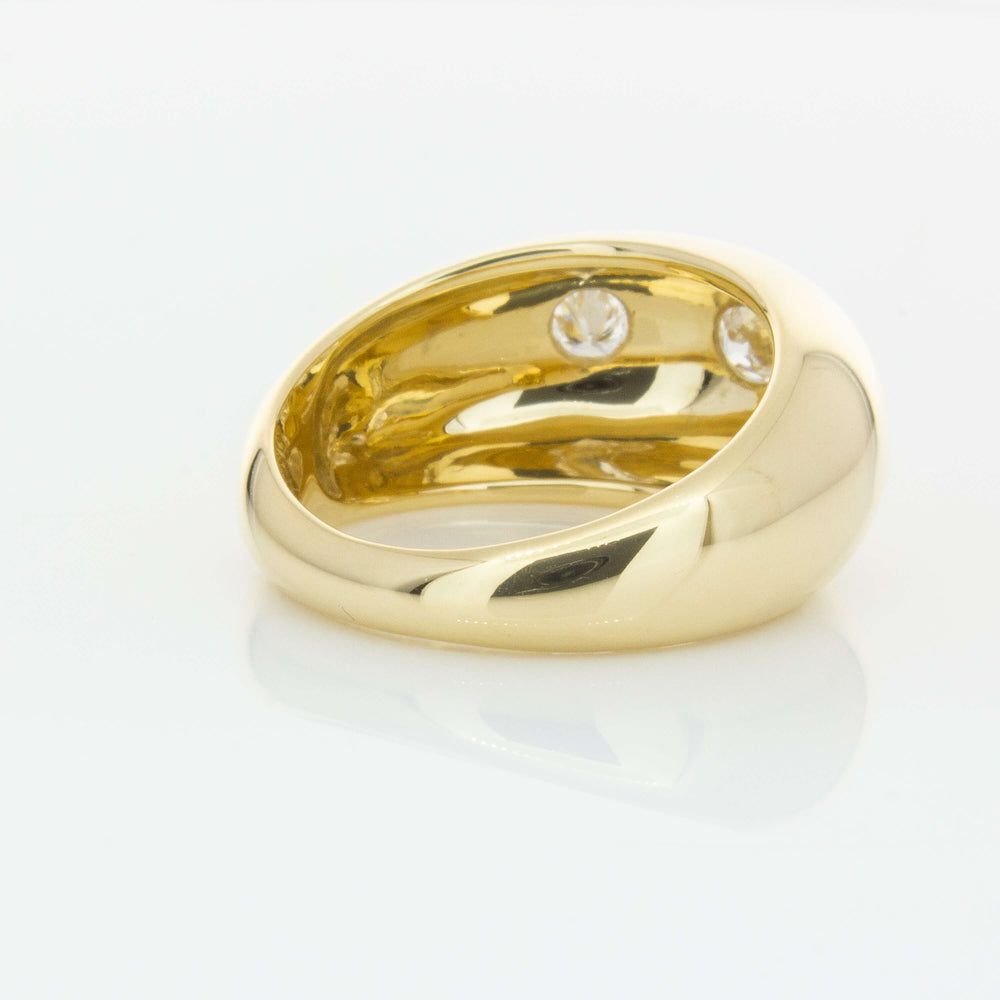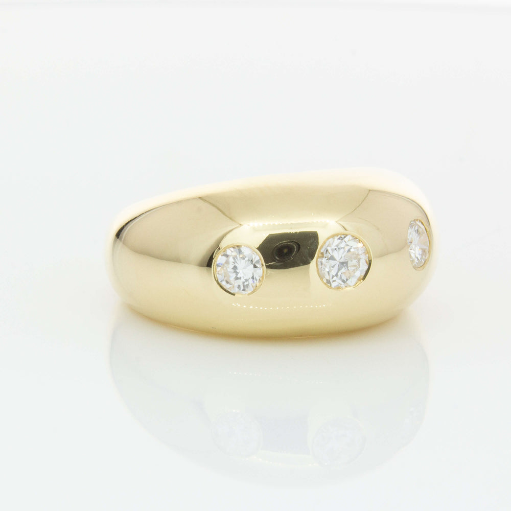 Expertly crafted from 9ct yellow gold, this stunning Madonna ring boasts three round brilliant diamonds and a bold rounded design that adds sophistication to any outfit. With its unique shape and stunning shine, it's the perfect accessory for those looking to make a statement.