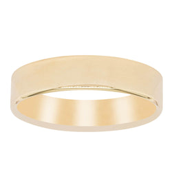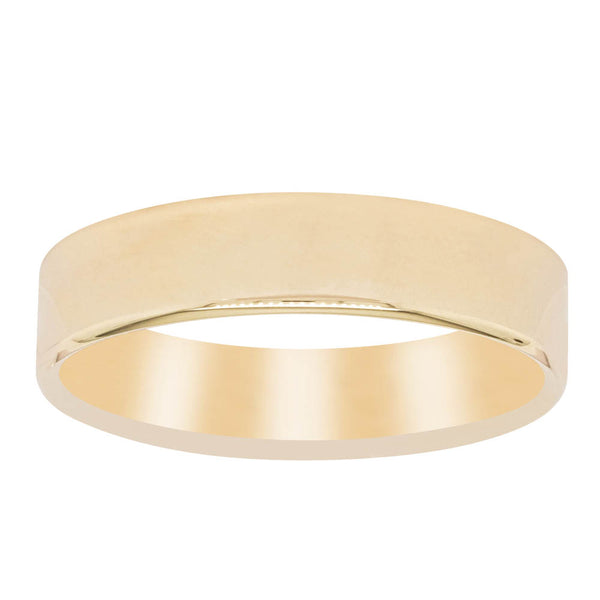 This 9ct yellow gold ring is 5mm wide and has a square profile edge. Available in a standard polished finish (as pictured) or brushed.