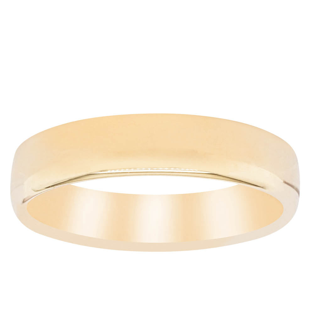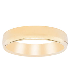 This 9ct yellow gold ring is 5mm wide and has a slightly rounded profile. Available in a standard polished finish (as pictured) or brushed, you can't go past this classic piece.