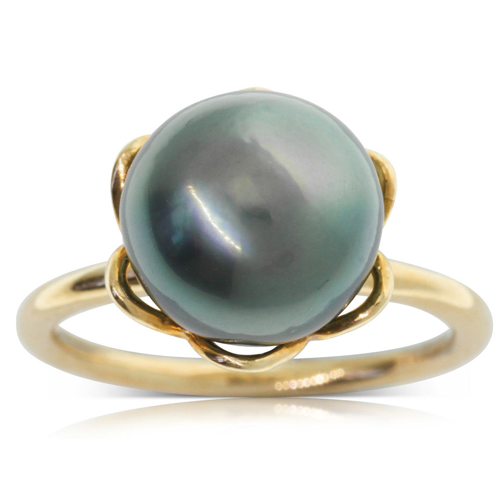 9ct Yellow Gold Tahitian Black Pearl Ring