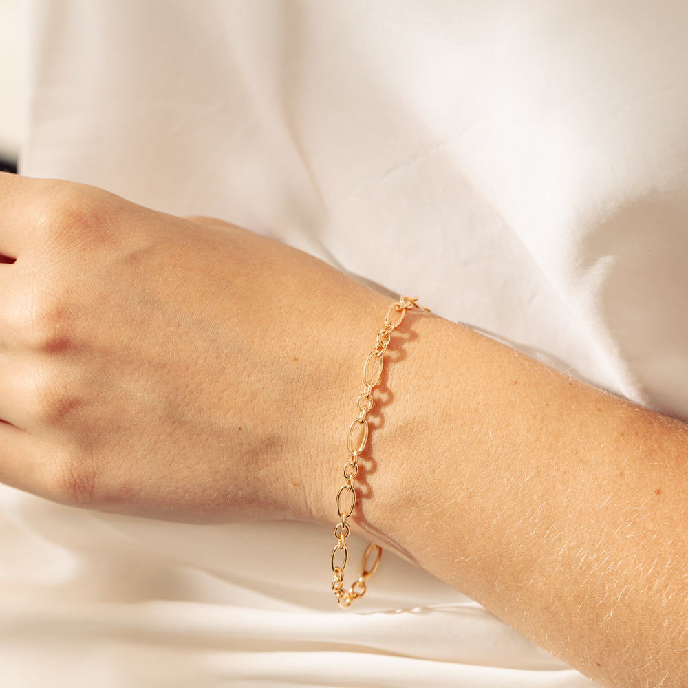 Celebrate timeless style with this classic oval Figaro bracelet, carefully crafted in 9ct yellow gold. Renowned for its distinct pattern, the Figaro design alternates elegantly between elongated oval links and pairs of smaller round links, creating a look that blends tradition with modern versatility. This bracelet is effortlessly wearable on its own for understated sophistication or stacked with your favourite bangles and bracelets for a bolder statement.