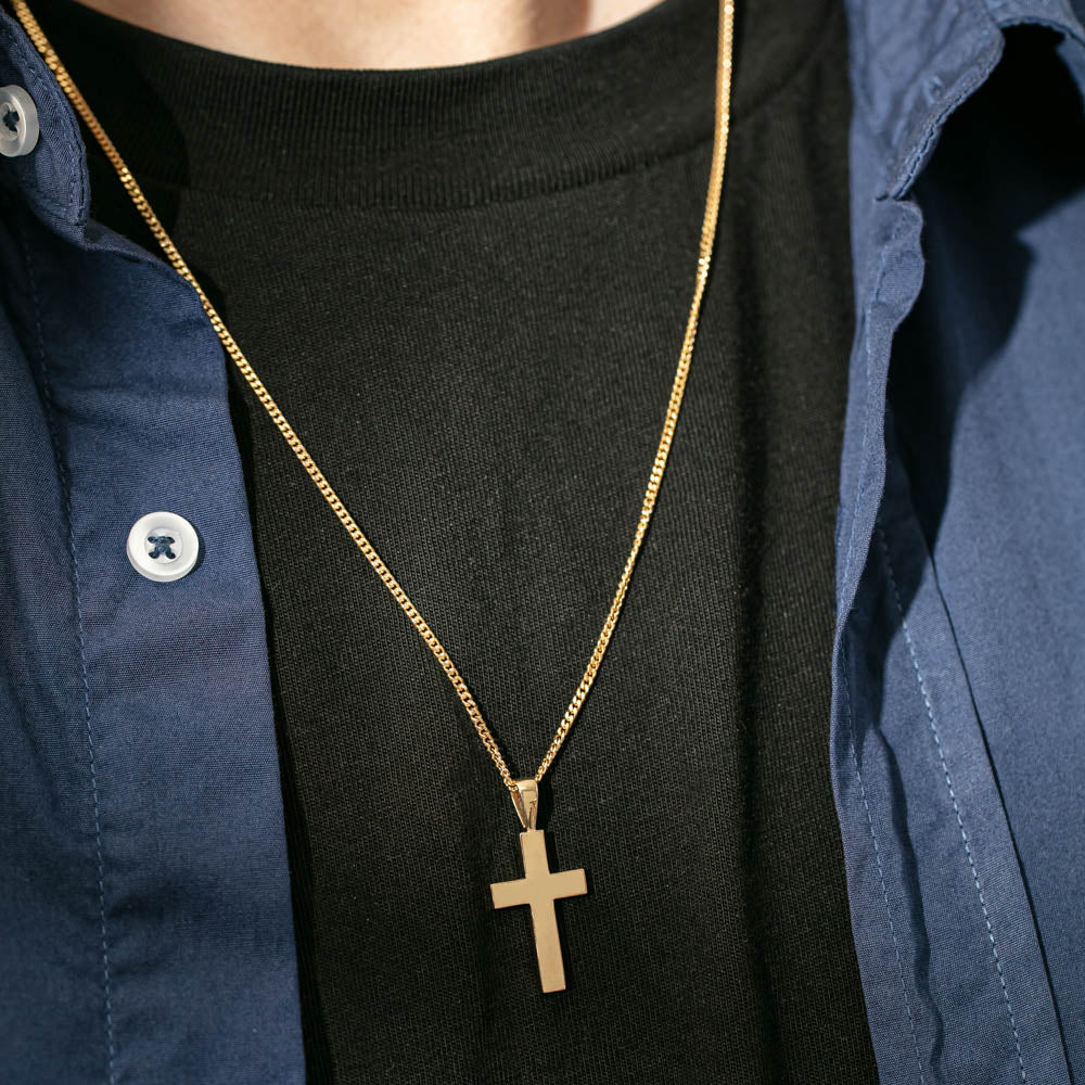 A beautiful, simple cross will make a lovely gift on that special occasion or a perfect investment piece for yourself. The 9ct yellow gold cross pendant is a medium size, has a square profile and rests on a yellow gold curb chain. This gorgeous piece is perfect for the minimalist that loves to add just the right amount of shine to every outfit.