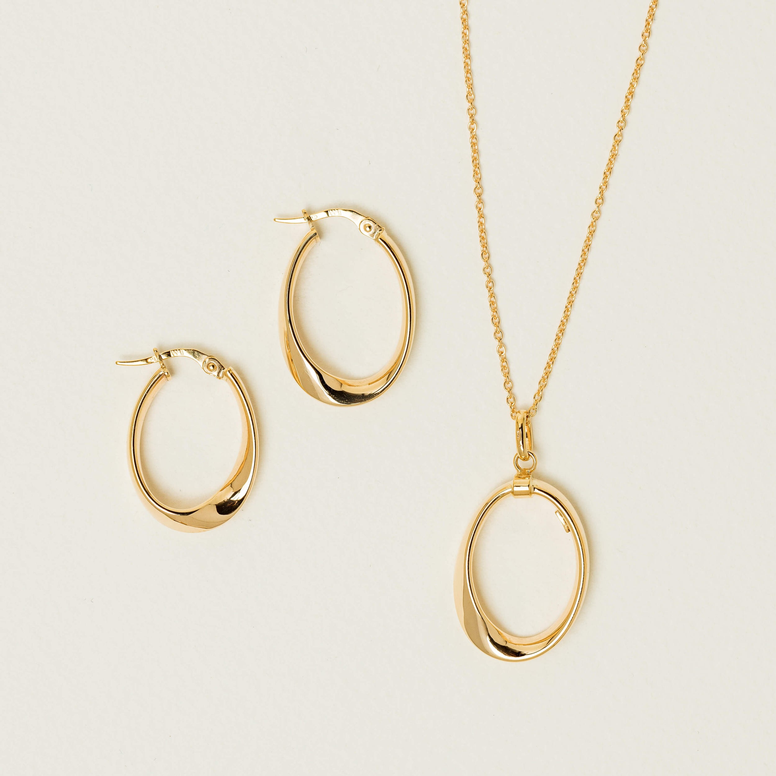 9ct Yellow Gold Oval Ribbon Pendant with Chain