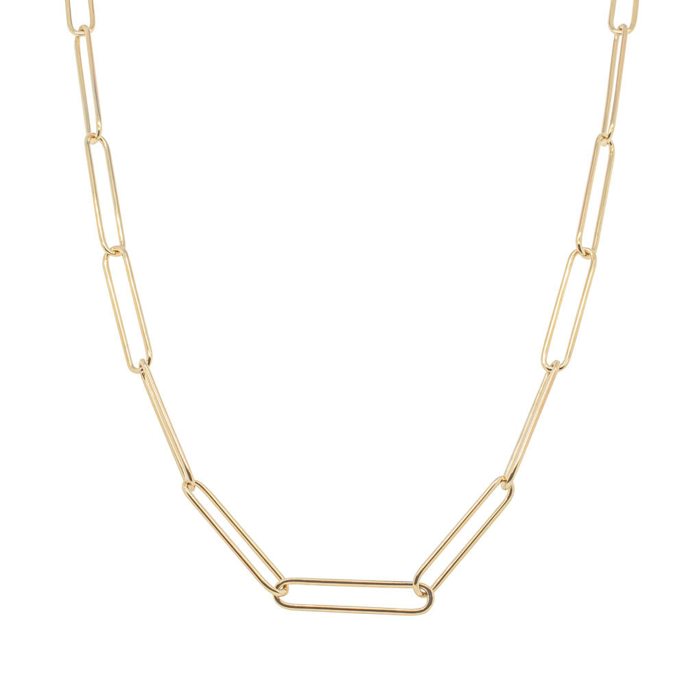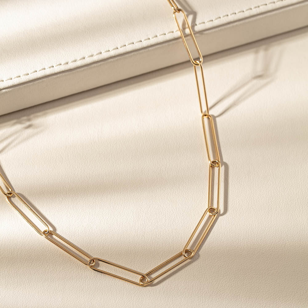 9ct Yellow Gold Elongated Paperclip Link Necklace