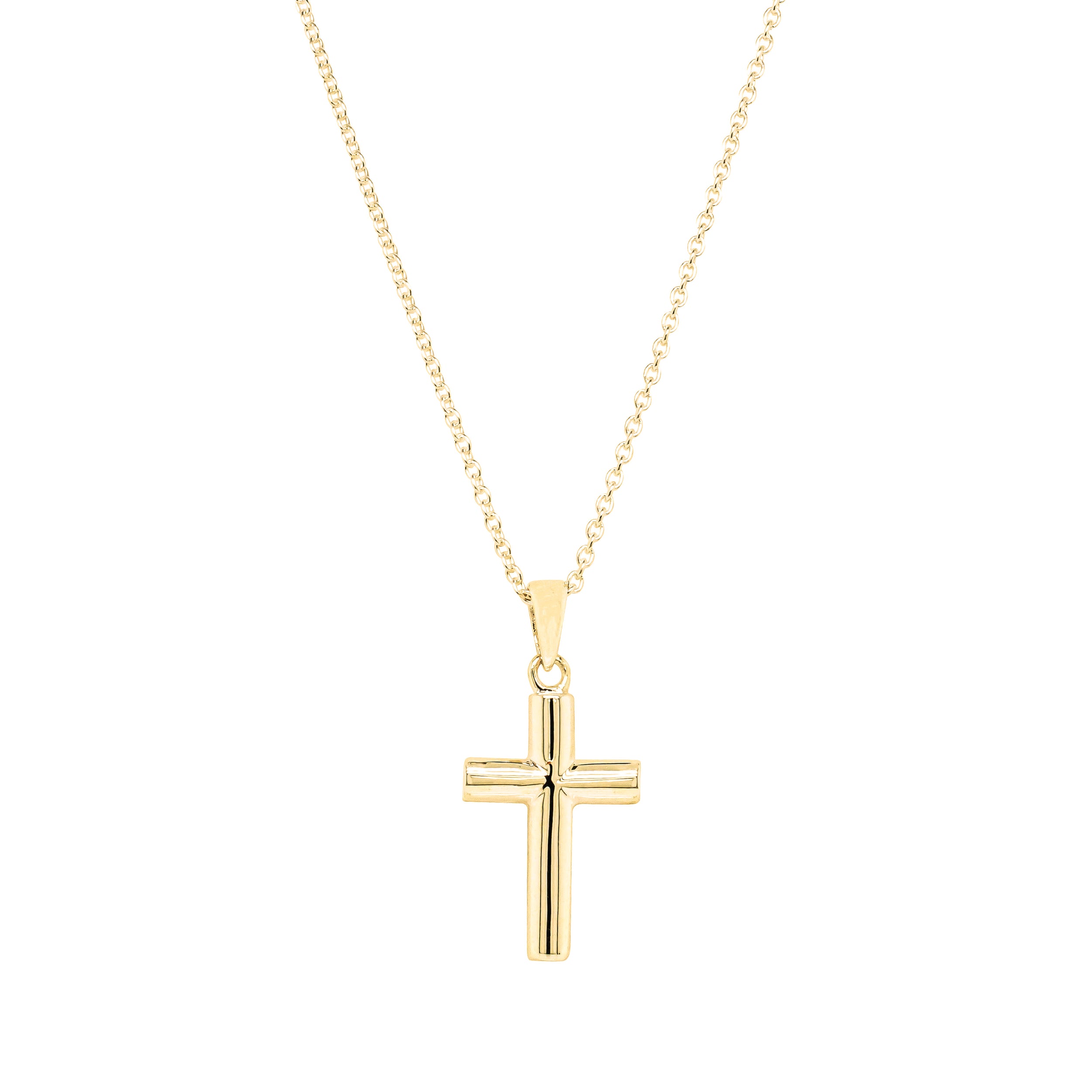 Timeless and classic, this cross will always be a favourite. Carefully crafted from shining 9ct yellow gold, this cross comes on a 45cm 9ct yellow gold oval link chain. This gorgeous piece is perfect for the minimalist that loves to add a little shine to every outfit. Dress it up or down, you will love this little beauty, we can promise that!