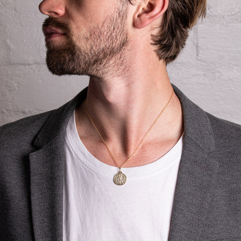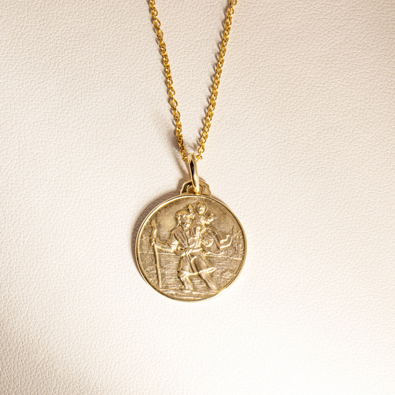 This shining St Christopher charm is the perfect gift for those about to travel, or to keep yourself safe on your quests. St Christopher is traditionally worn for protection on long journeys.