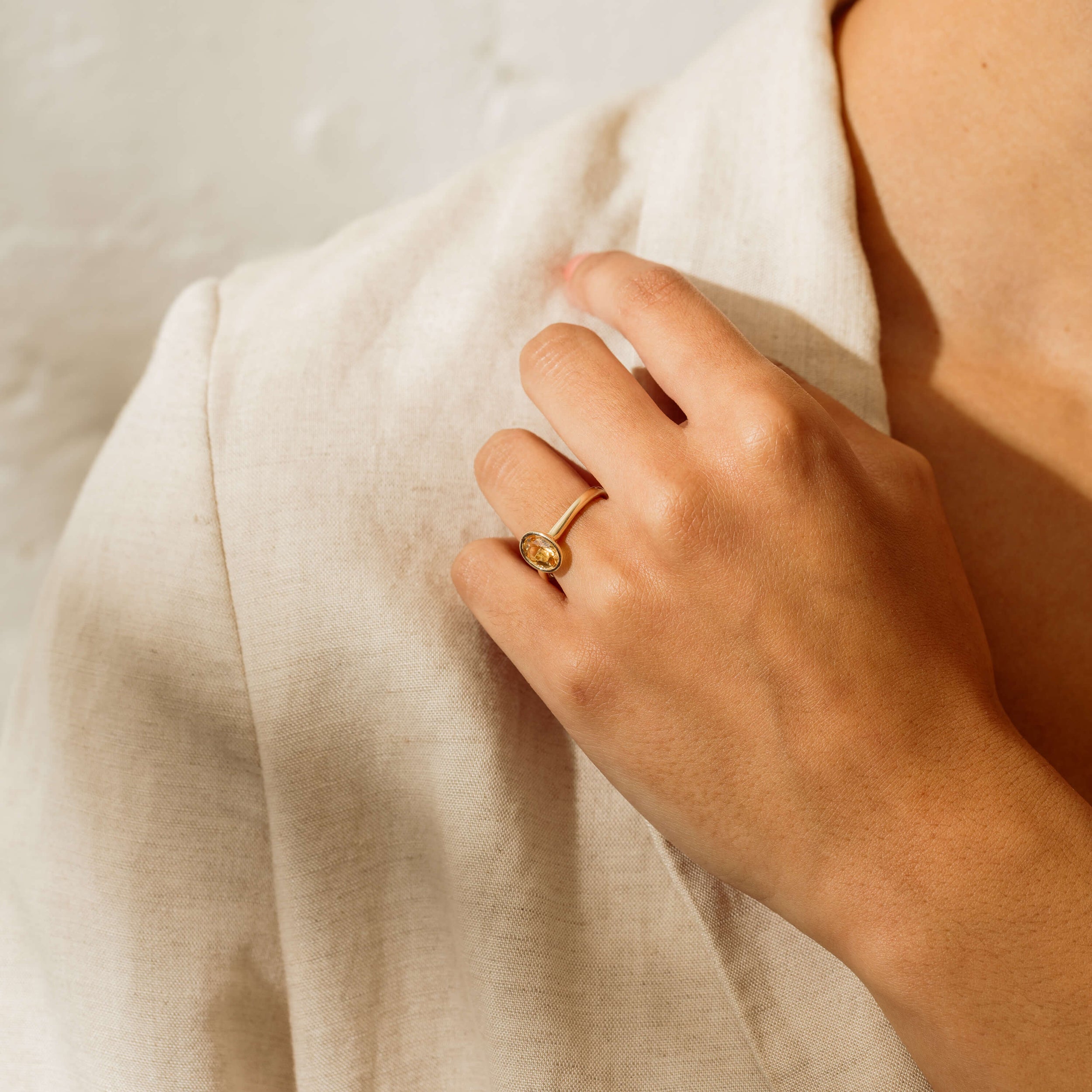 Fresh, vibrant, and effortlessly elegant, the 9ct Yellow Gold Yellow Topaz Rubover Set Ring showcases a stunning oval-cut yellow topaz in a smooth rubover setting. The rich yellow gold band beautifully frames the gemstone, enhancing its brilliance. This ring’s sleek lines and bold colour make it a timeless statement—perfect for those seeking a touch of cheerful sophistication in collection.