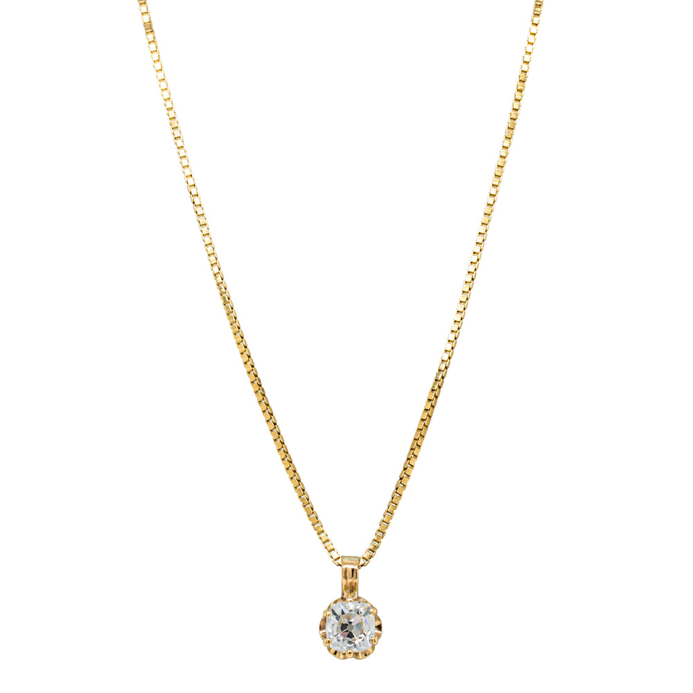 Crafted in shiny 14ct yellow gold, this 1970s Deja Vu pendant features a stunning old mine cut diamond. Perfect for adding a touch of elegance and sophistication to any outfit, this pendant is a timeless accessory that will never go out of style.