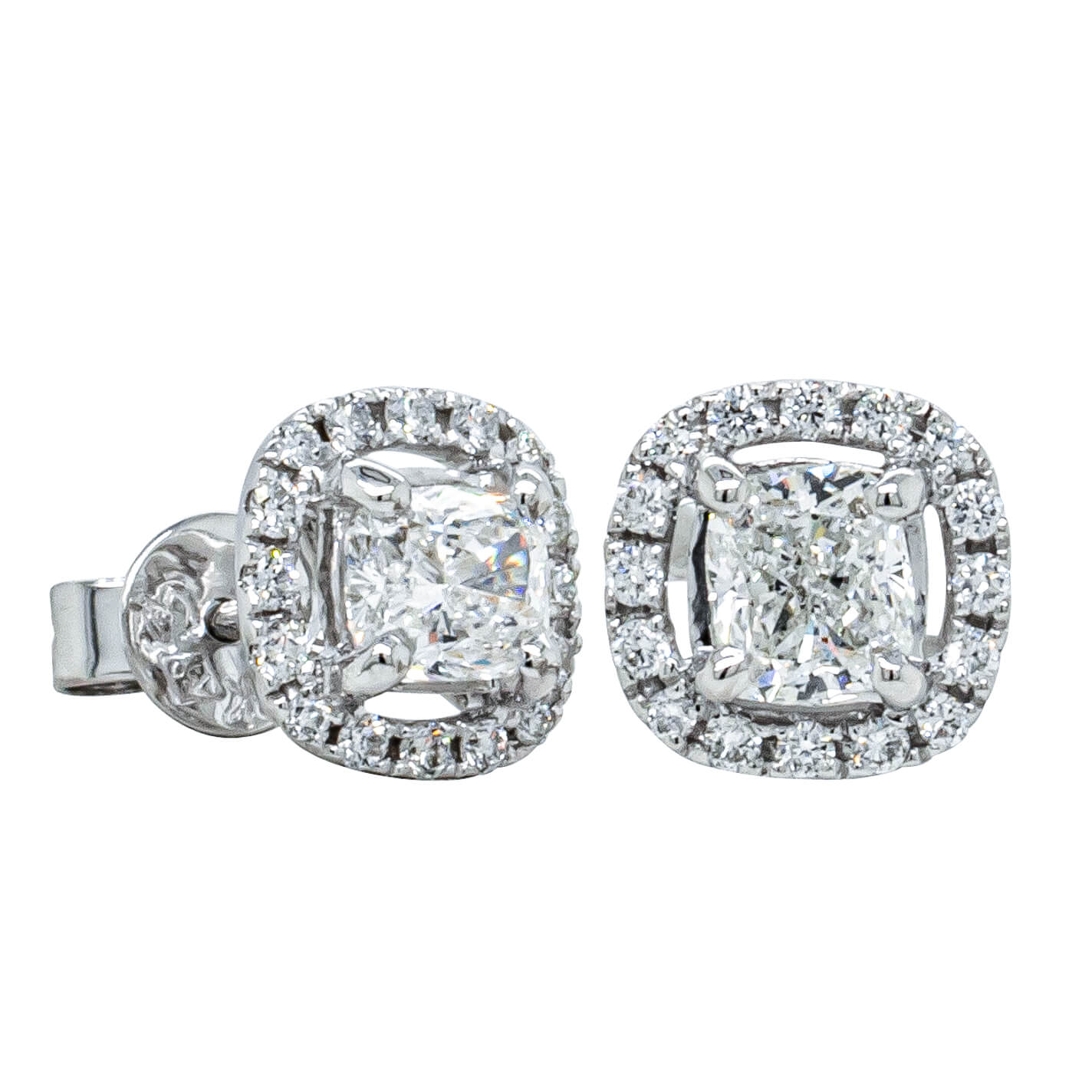 Deja Vu 18ct White Gold 1.00ct Cushion Cut Diamond Cluster Stud Earrings