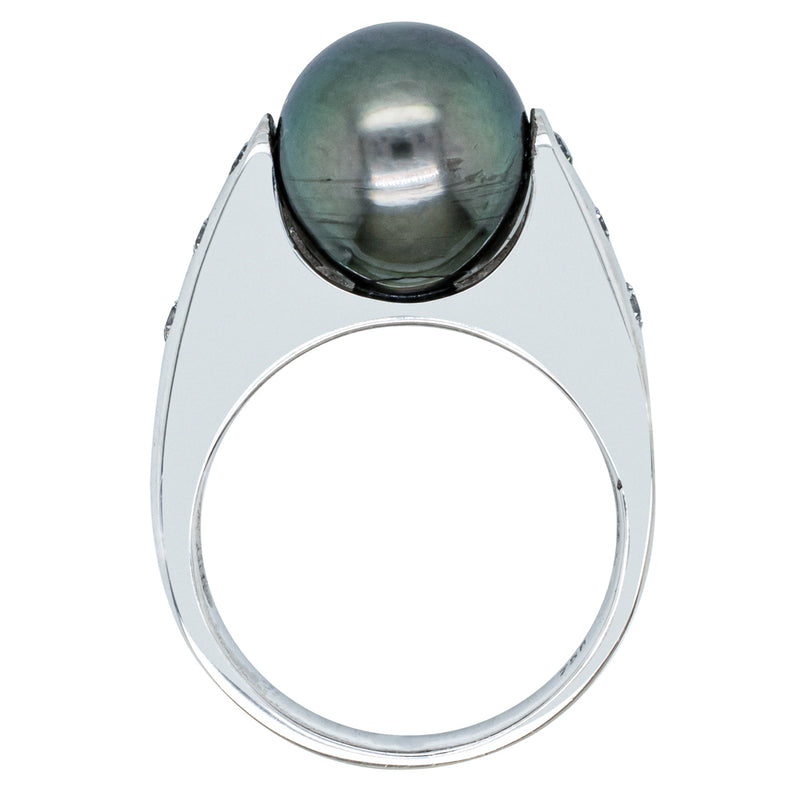 Deja Vu 18ct White Gold Black Pearl & Diamond Ring