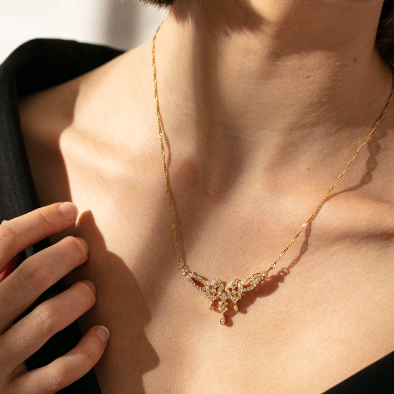 A beautifully crafted piece from our Deja Vu collection that mixes elegance with contemporary design, the scattered diamond design of this 18ct yellow gold necklace features eighty four round brilliant cut diamonds and is sure to be a unique piece that will add a touch of glamour to any outfit!