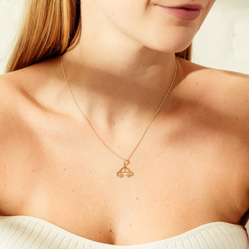 This Deja Vu 18ct yellow gold pendant shines with an adorable car charm. Elevate your style with a unique pendant that will become your go-to accessory.