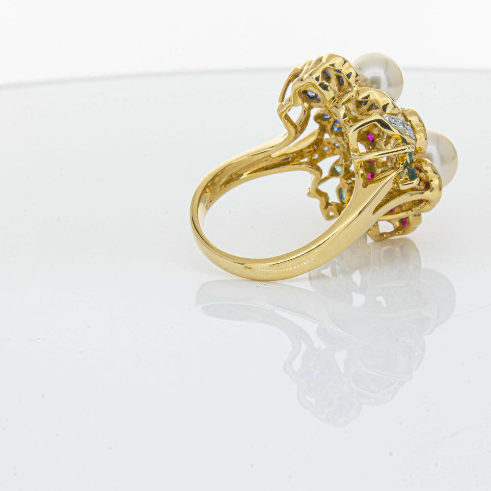 Deja Vu 18ct Yellow Gold Pearl & Multi Gem Floral Ring