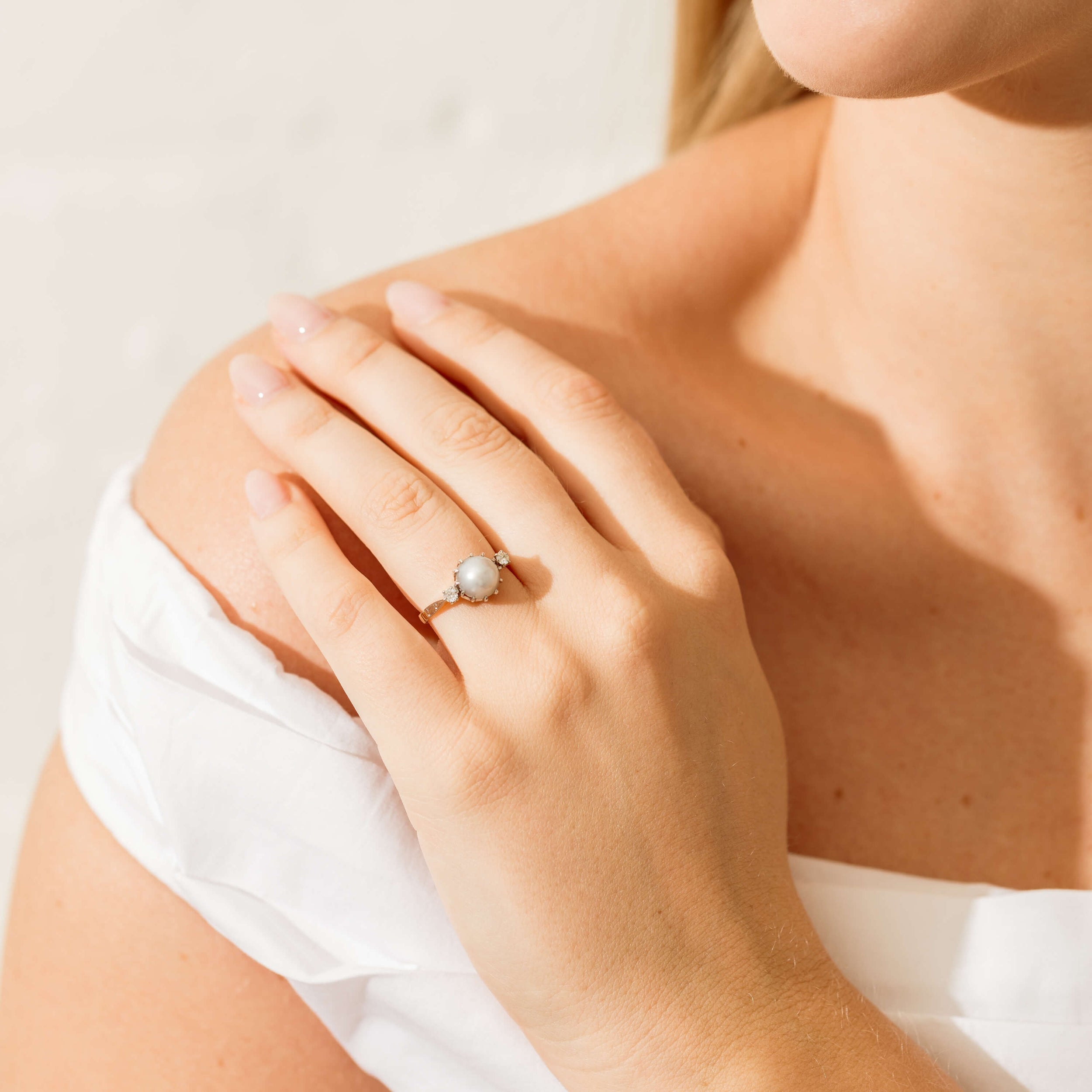 Deja Vu 18ct Yellow Gold & Platinum Pearl and Diamond Ring