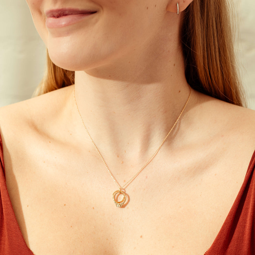 This Deja Vu Charm adds a dazzling touch to your jewellery collection. Crafted in 9ct yellow gold, this charm features a wedding ring and an engagement ring with a cubic zirconia.