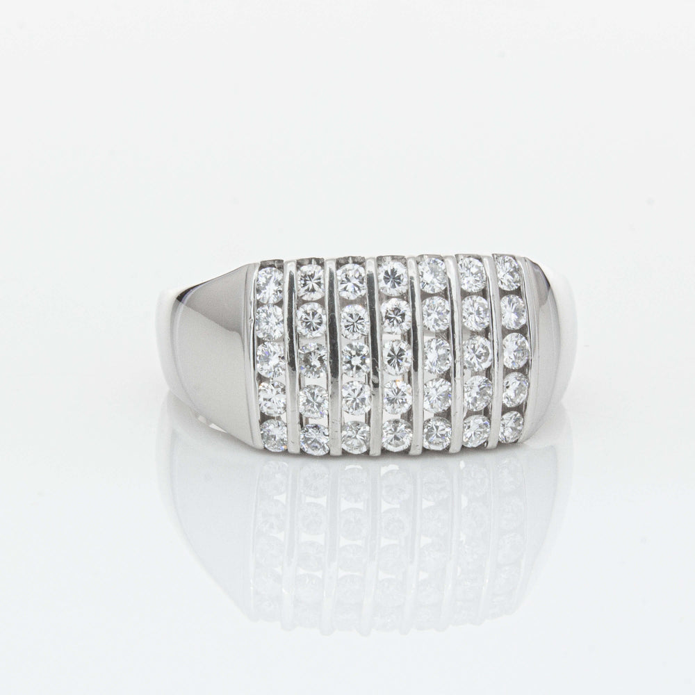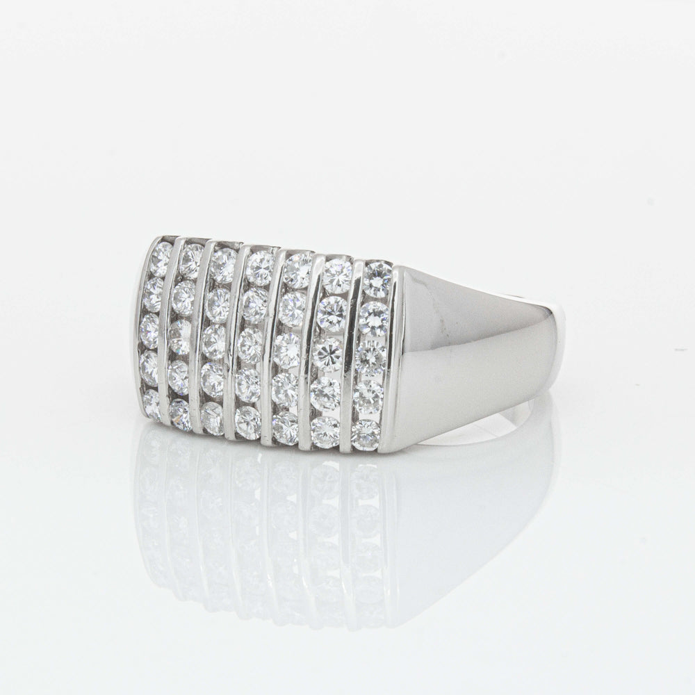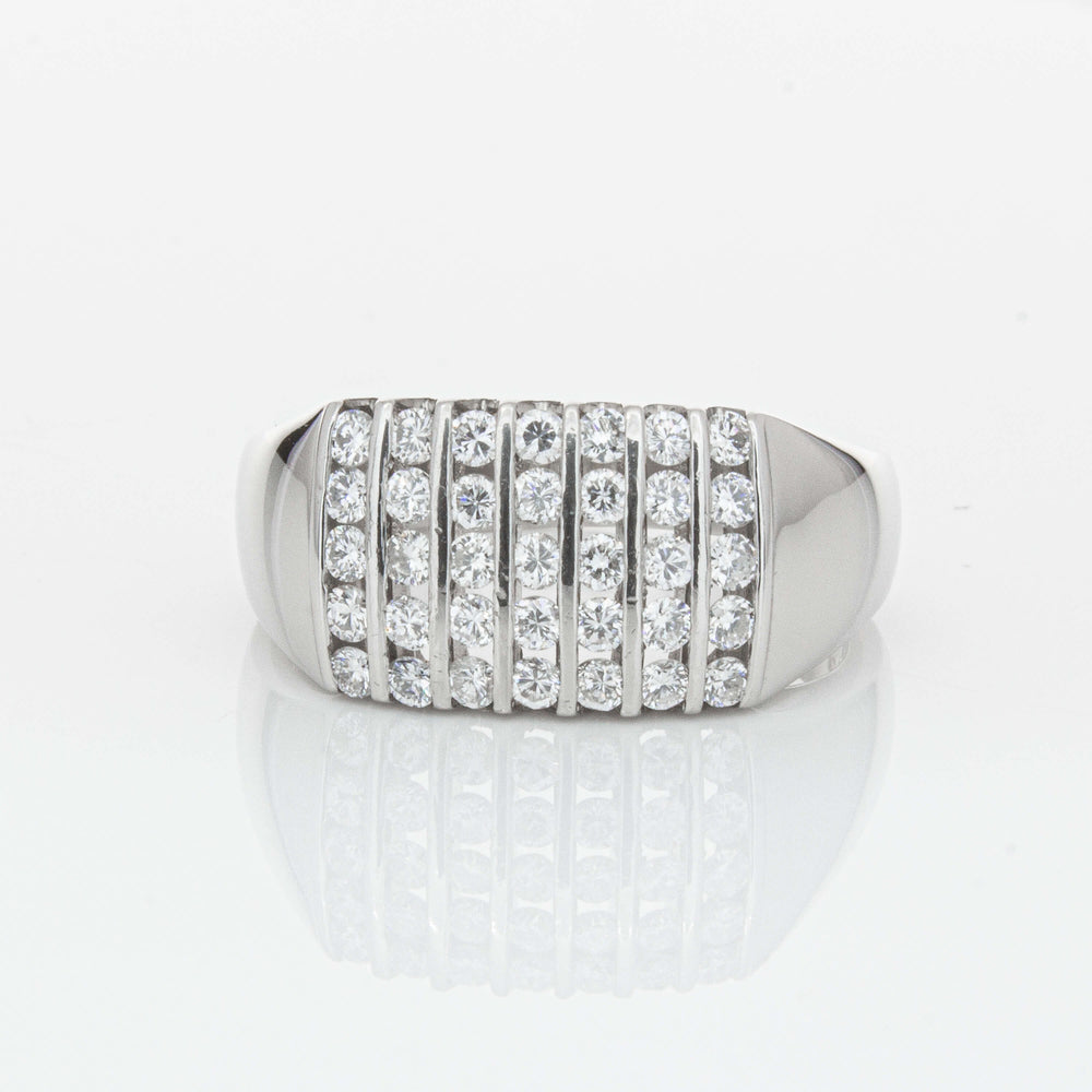 Made in luxurious platinum, this gorgeous Deja Vu ring boasts a cluster of thirty-five round brilliant cut diamonds. You will love showing off this sparkling piece!