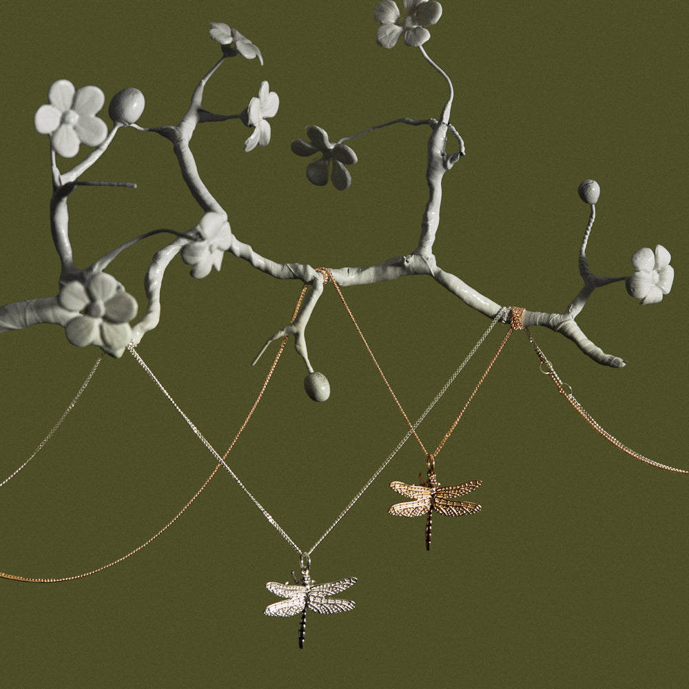 Farmed for it's wisdom and adaptability, the dragonfly, with elongated body and two pairs of strong wings, delivers fortitude and positivity.