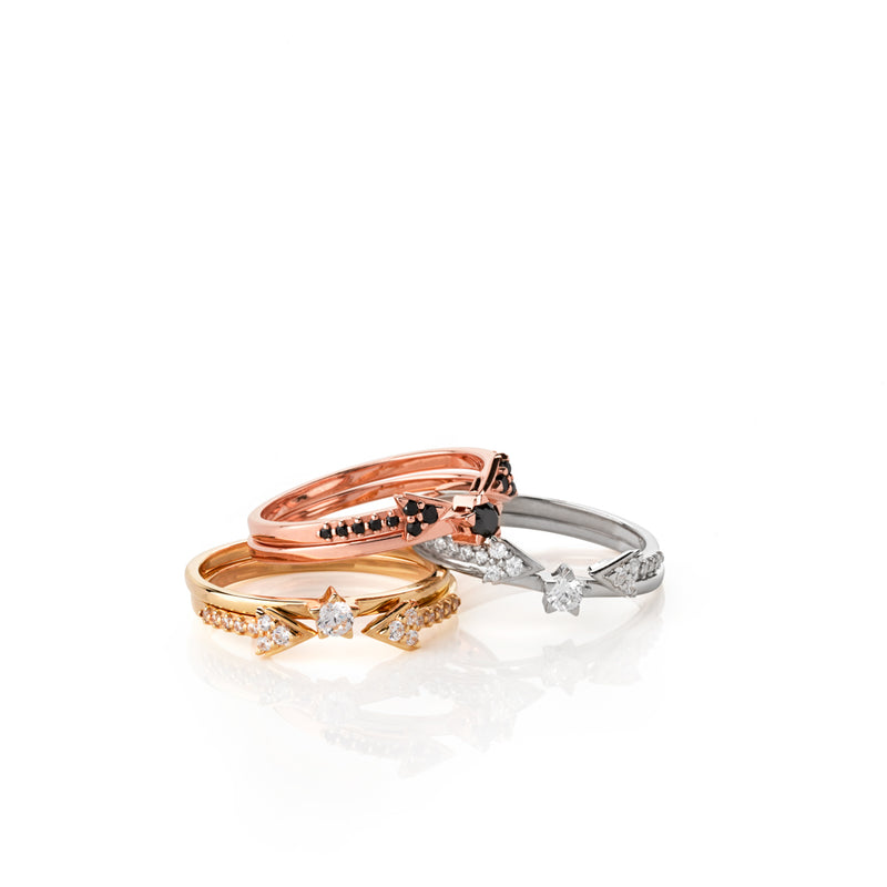 Looking to the night sky, Forever Ring is a starry-eyed classic 0.08 carat round brilliant solitaire set in our iconic five-pointed star. Favouring elegance in simplicity this ring can be made bespoke in your choice of white, black or champagne diamonds.