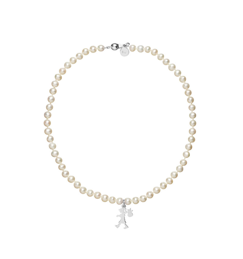 Combining timeless elegance with a fearless and intrepid spirit, a sterling silver Runaway Girl is suspended from a lustrous strand of white freshwater pearls for this fresh take on the classic pearl necklace.