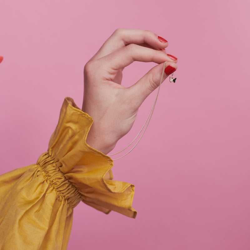 A butterfly – that magnificent insect long associated with transformation – finds new life suspended from a sterling silver delicate chain.