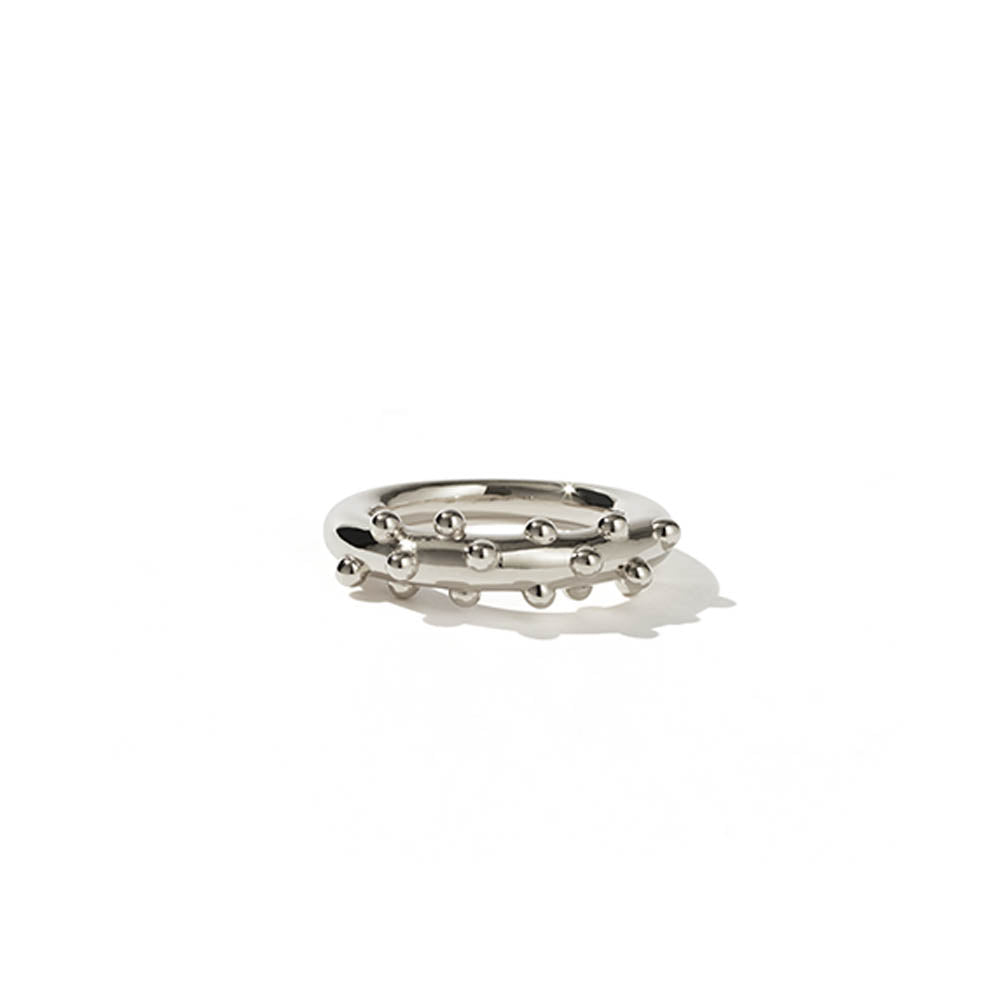 A simple, rounded band polka-dotted with tiny barnacles, like a treasure from the deepest sea. Playful, textural and tactile.