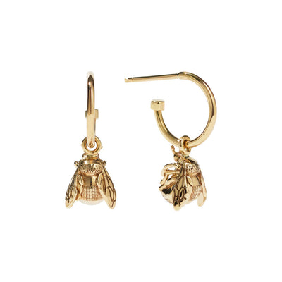 A small and intricately-sculpted bee charm, suspended from a minimal signature hoop. Representing diligence, resilience and community — an everyday talisman for the unassumingly powerful.