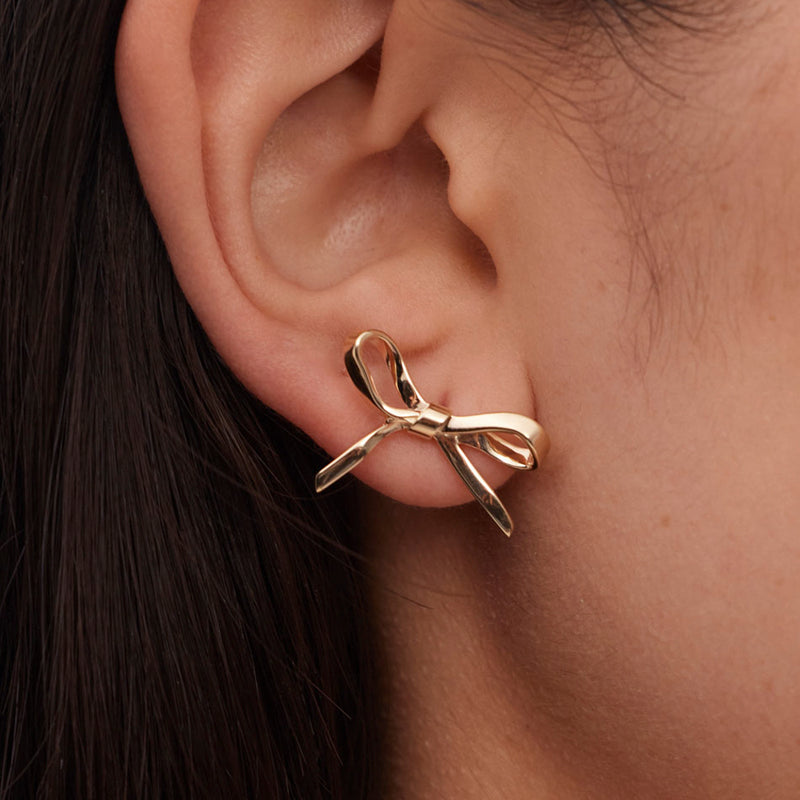 An unfussily-formed little bow that adorns the earlobe like the finishing touch to a present. Nostalgic in mood but modern in form.