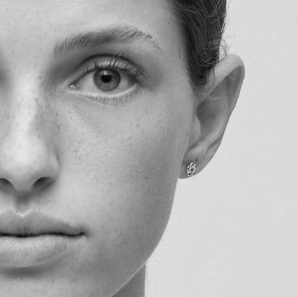 Timeless floral studs with brilliant-cut centre stones – capturing the purity of form and the quiet power of beauty in bloom. Understated and eternally elegant.