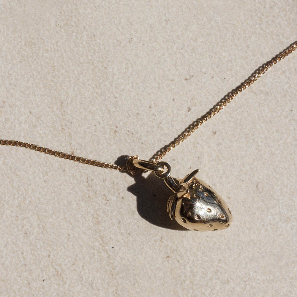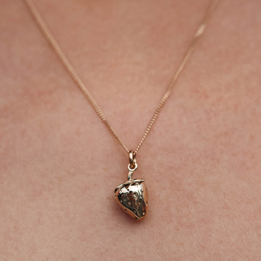 A small and intricately-sculpted strawberry charm, suspended from the most delicate of chains. One for the true sweeties and summer babes.