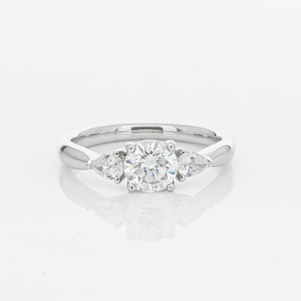 A timeless reminder of your love, you will cherish this precious Ayla ring. Crafted in platinum, this ring features a sparkling round brilliant cut diamond framed by twinkling pear cut diamonds.