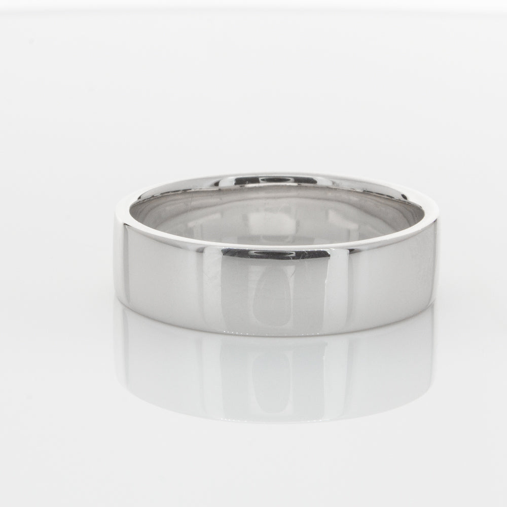 This band is 6mm wide and is available with a polished (as pictured) or brushed finish.